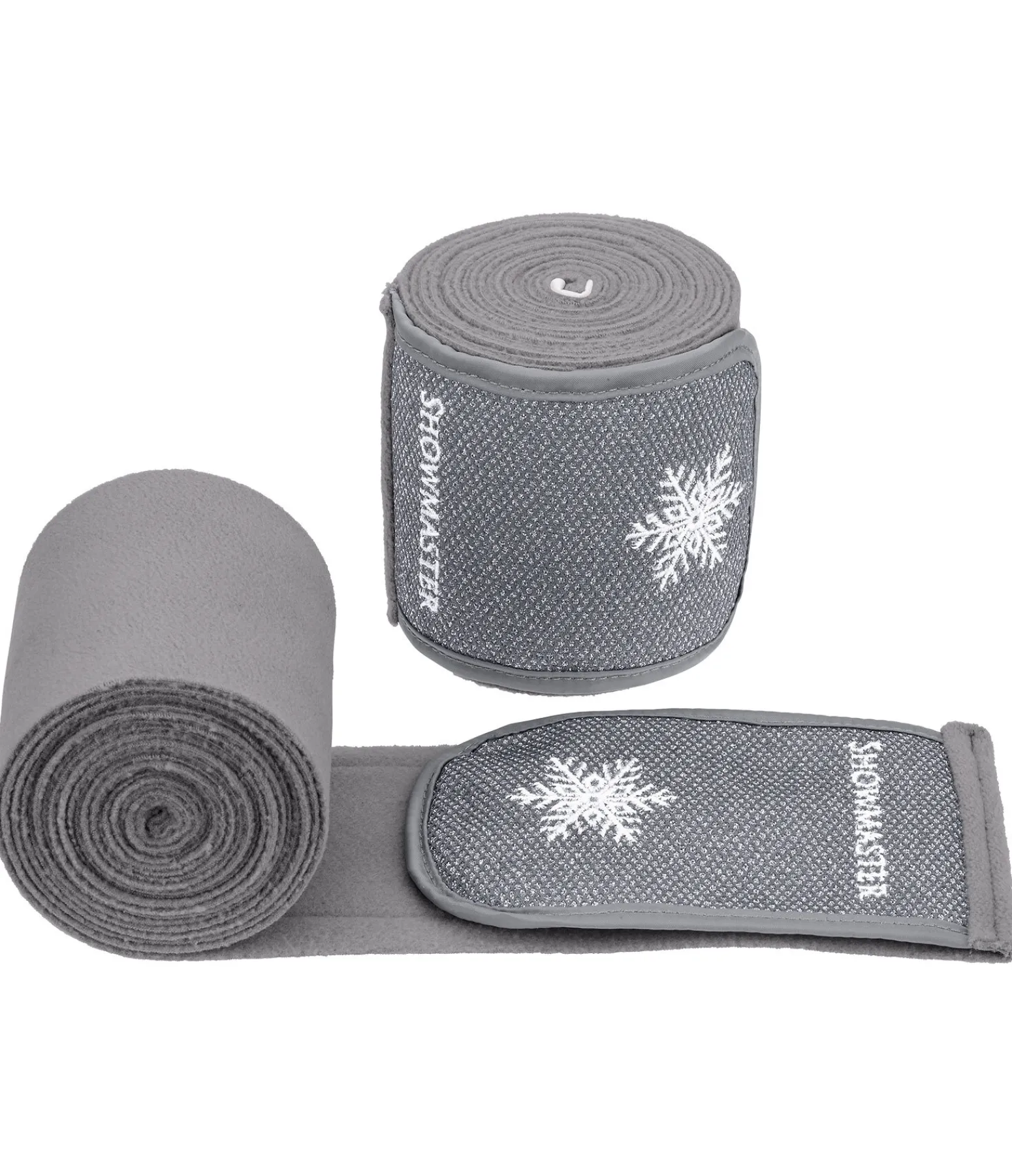 Bandes de Noël en polaire. Large patte auto-agrippante recouverte d’un tissu scintillant et d’une broderie flocon de neige. 350 x 11 cm. 100 % polyester.