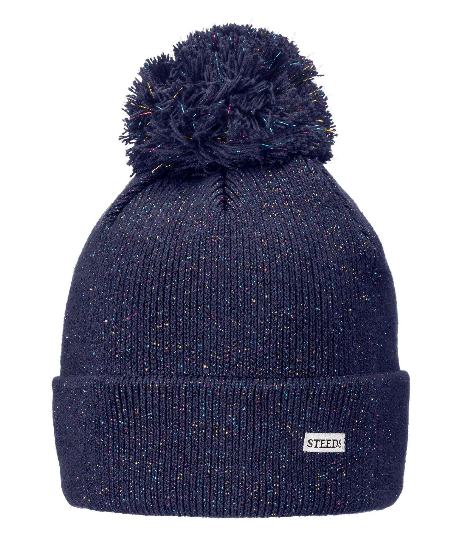 Bonnet fantaisie pour enfant dans un joli effet tricot avec fil brillant aux couleurs de l’arc en ciel et pompon. 60 % coton, 40 % polyacrylique.