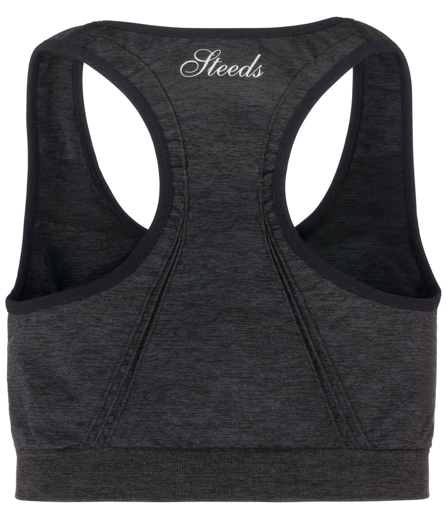 Brassière de sport technique à séchage rapide. Aspect chiné. Dos nageur. Large bande élastique sous la poitrine. Soutien moyen. 52 % nylon, 41 % polyester, 7 % élasthanne.