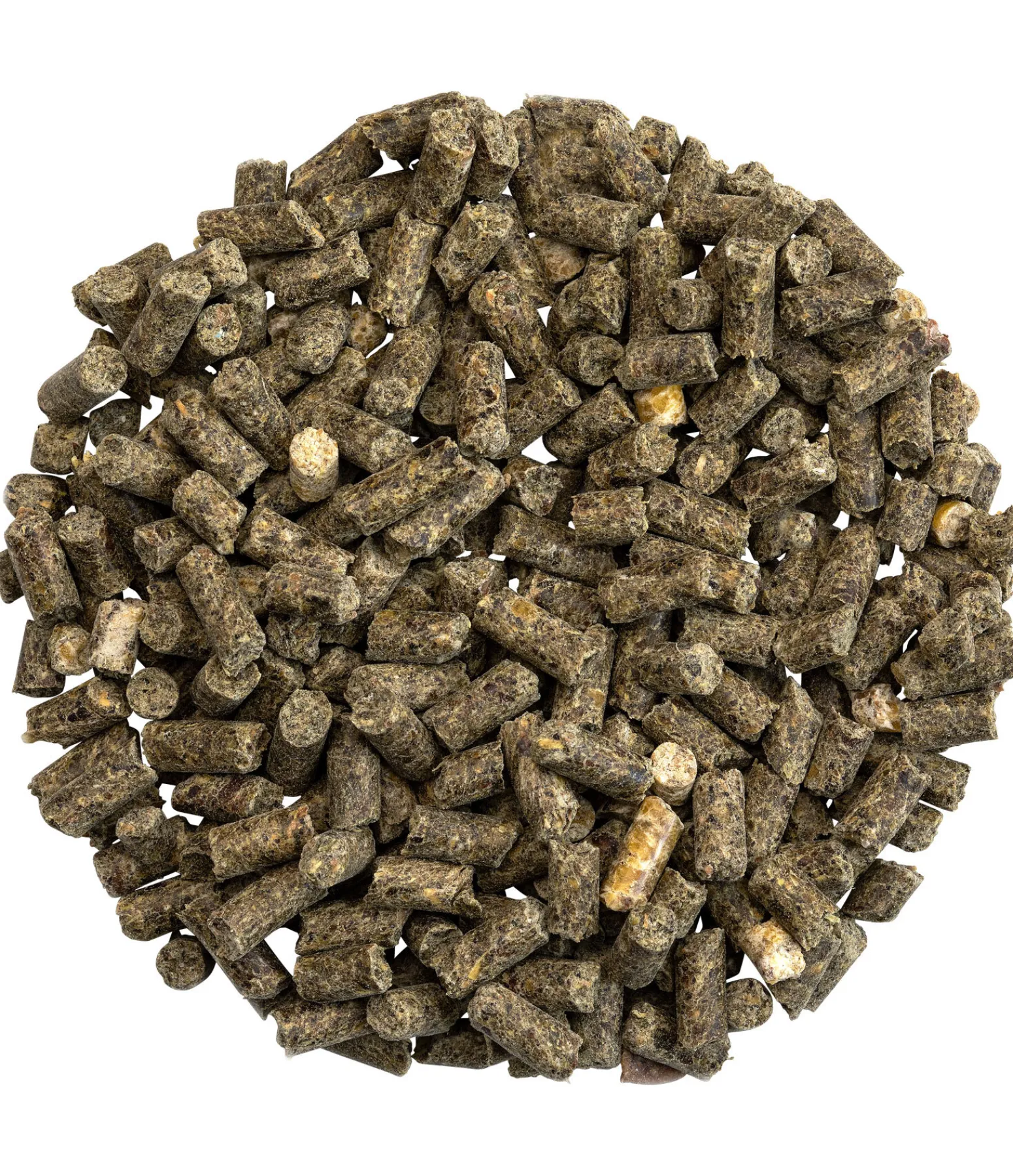Composition : luzerne, marc de pommes, tourteau de lin, dextrose, fumarate de magnésium 10 %.