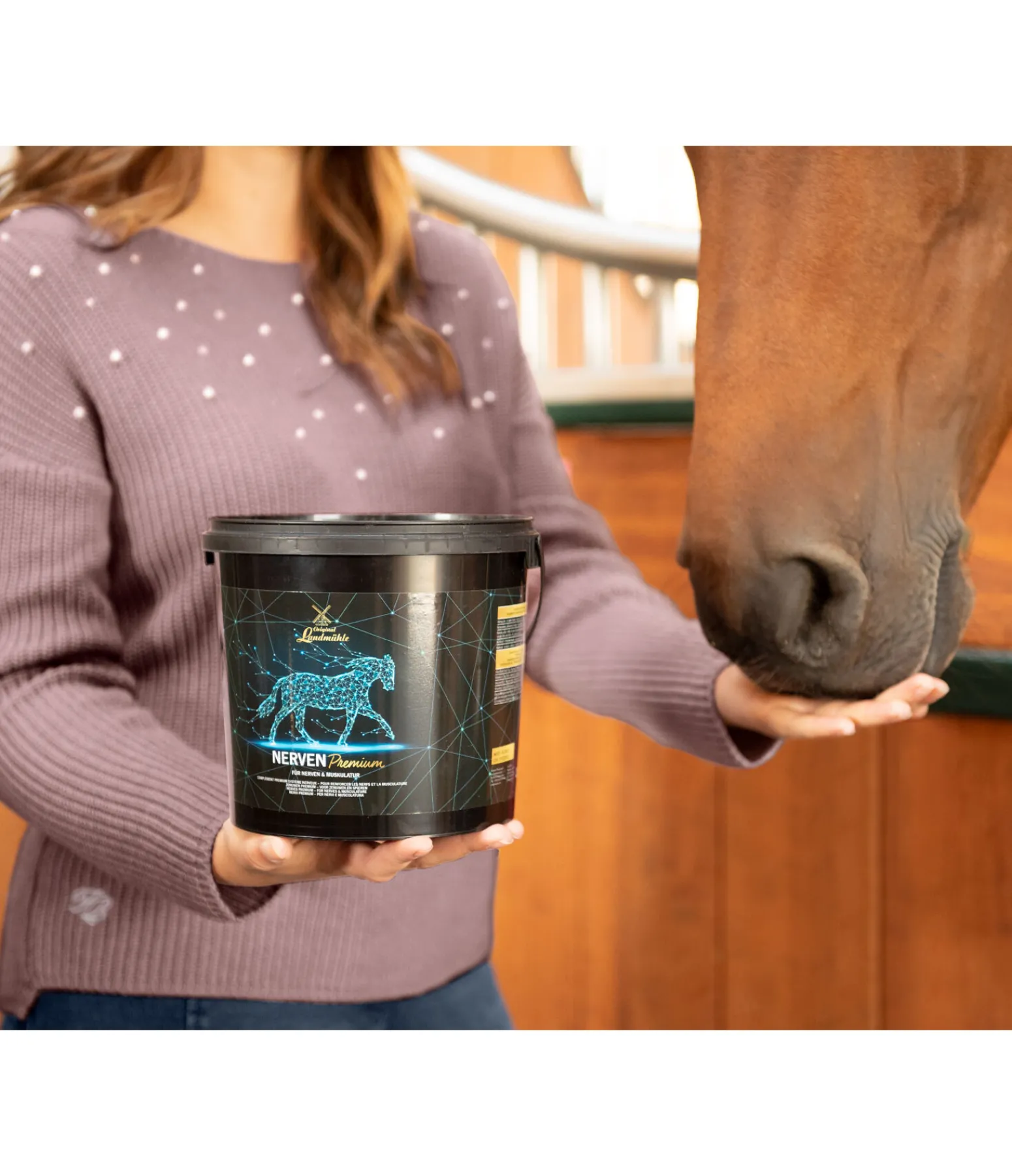 Aliment complémentaire premium pour chevaux, riche en fumarate de magnésium organiquement lié et en vitamines. Les chevaux tendus, nerveux et stressés sont souvent un danger non seulement pour eux-mêmes, mais également pour leur cavalier. Les chevaux ayant une carence en magnésium sont souvent maladroits, démotivés et stressés. Le stress est souvent lié au métabolisme musculaire. En effet, les muscles tendus et les douleurs musculaires en sont souvent des conséquences. Cet aliment complémentaire contient beaucoup de magnésium, ce qui permet de soutenir le métabolisme musculaire notamment chez les chevaux nerveux. Cet apport en magnésium peut avoir un effet positif sur le calme et la sérénité du cheval. Les vitamines A, E, B12 et C peuvent contribuer à la relaxation des muscles et avoir des effets positifs sur le métabolisme musculaire. Le produit est donc idéal pour les jeunes chevaux nerveux à l’entraînement ou plus généralement pour les chevaux nerveux, stressés ou ayant tendance à souffrir de tensions musculaires. Exempt de céréales et de mélasse, en granulés faciles à donner aux chevaux et généralement mieux acceptés.