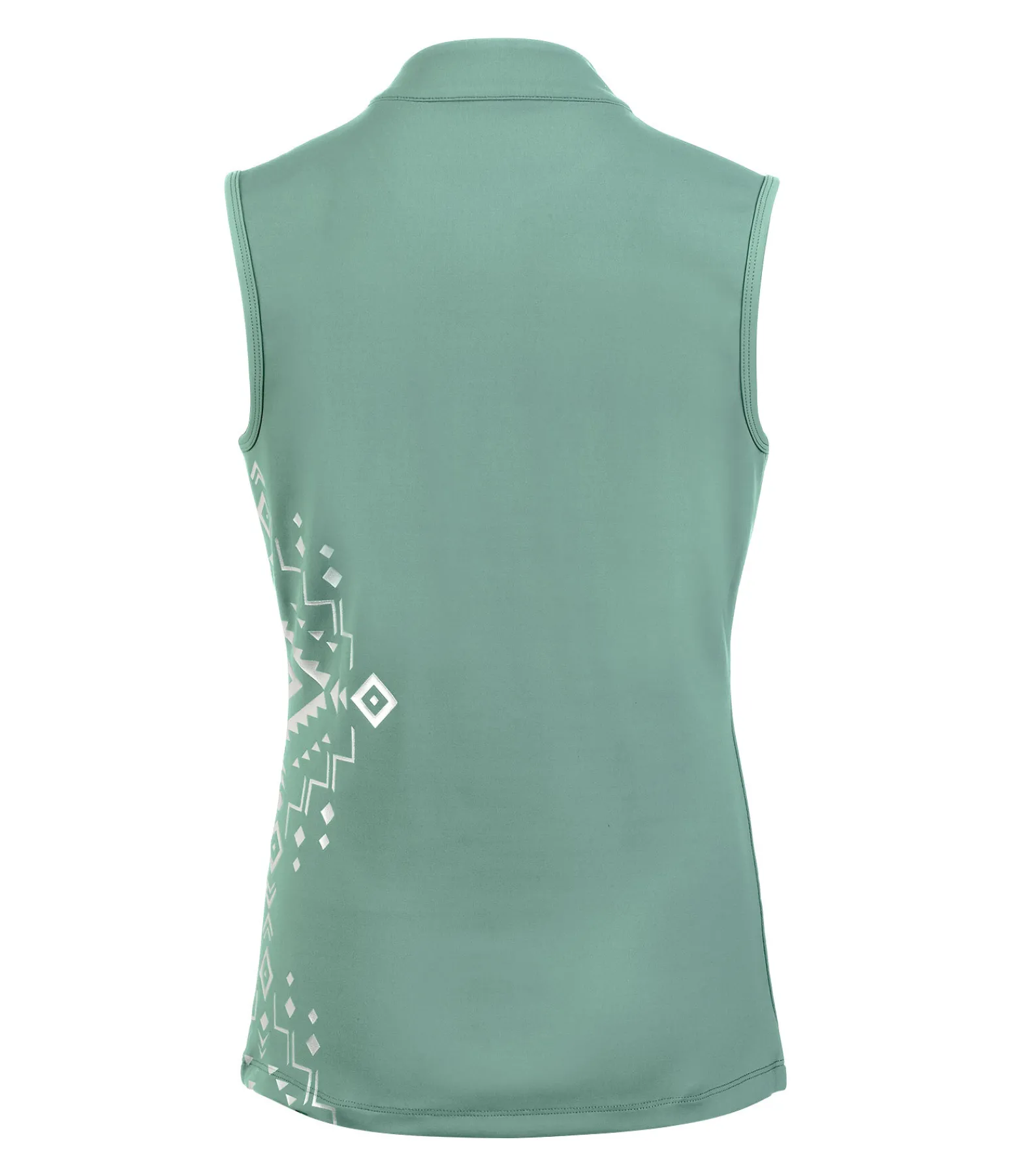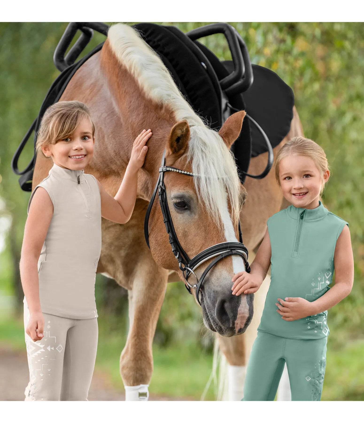 Débardeur pour enfant et adolescent. Coupe près du corps. Col montant zippé avec protège-menton. Matière respirante à séchage rapide. Imprimé argenté métallisé de chaque côté. 78 % polyester, 22 % élasthanne.