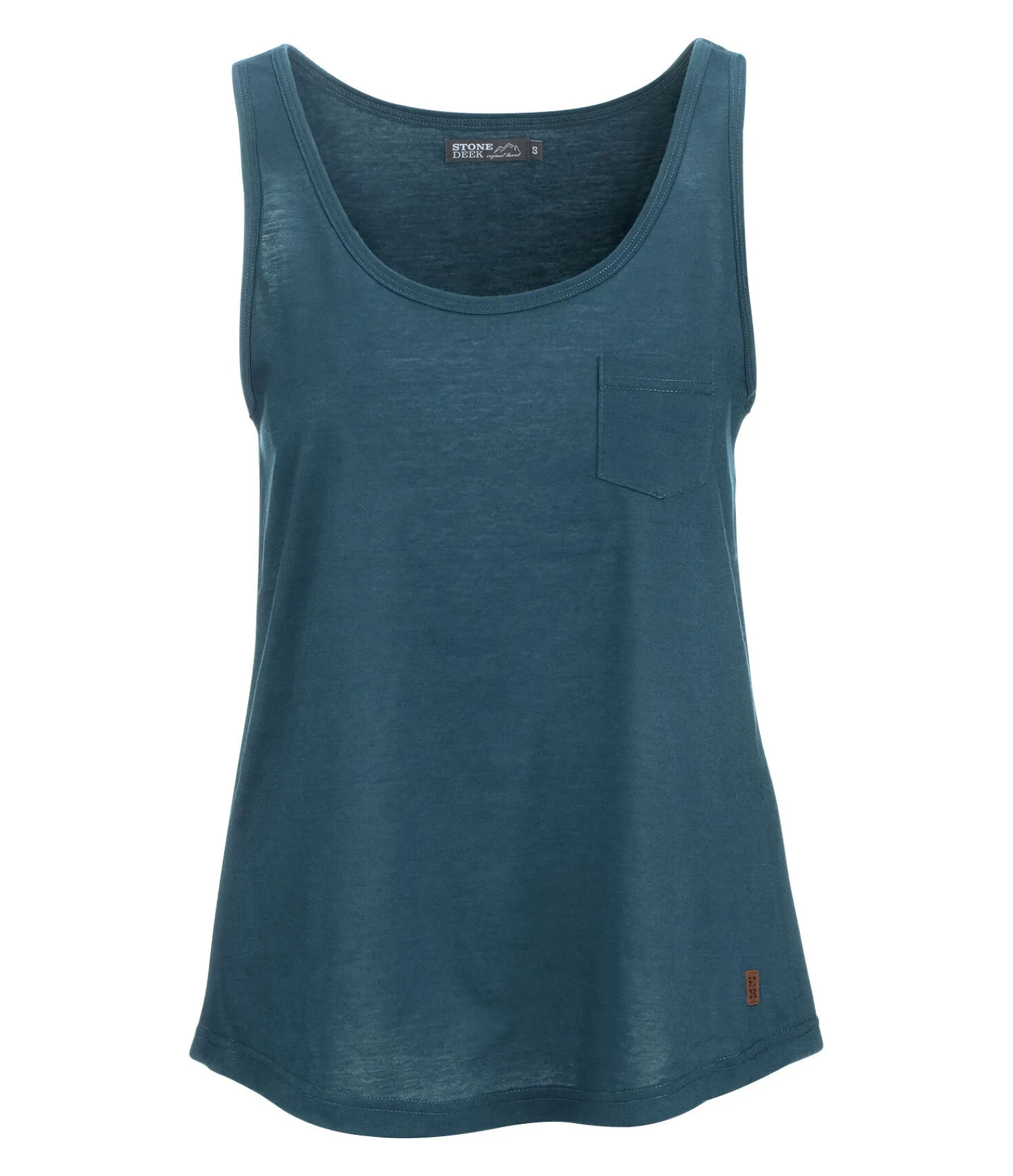 Débardeur ample avec poche sur la poitrine en jersey doux et léger. 15 % coton, 85 % polyester.