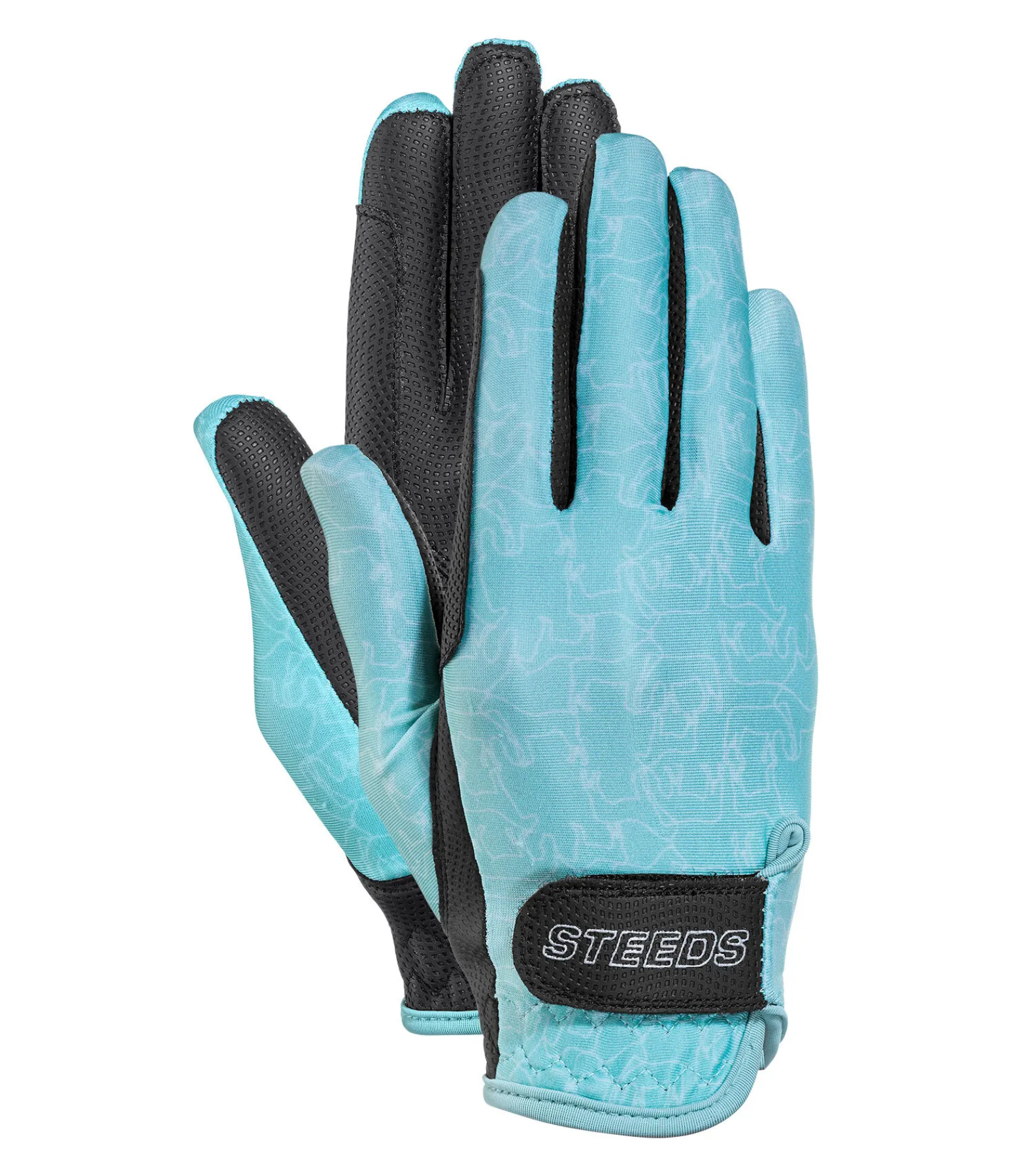 Gants d’équitation d’été légers et extensibles. Joli motif all-over cheval. Dos de la main en nylon doux. Paume en PU antidérapant. Renfort sur l’index pour éviter les irritations dues aux frottements. Fermeture par patte auto-agrippante avec logo STEEDS pour un ajustement optimal. Dessus : 82 % nylon, 18 % élasthanne. Paume: 51 % nylon, 49 % polyuréthane.