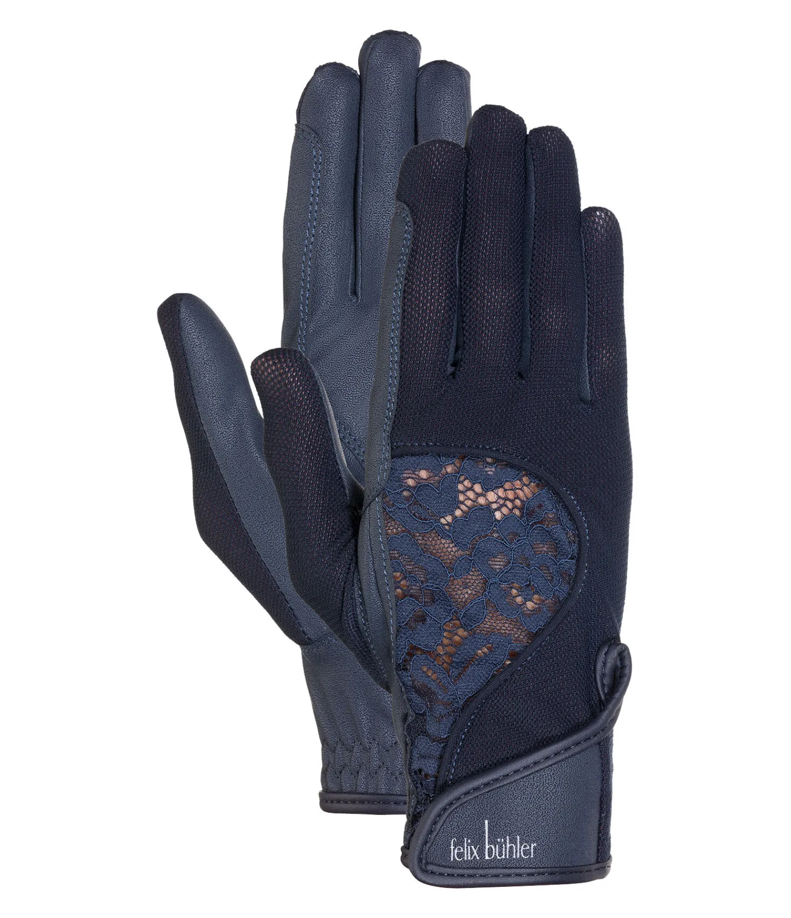Gants d’équitation fins avec élégant élément en dentelle sur le dos de la main. Paume antidérapante avec renfort aux passages de rênes. Mesh respirant sur le dos de la main. Poignets élastiqués avec patte auto-agrippante. Dessus 100 % nylon, paume 60 % polyester, 40 % polyuréthane.