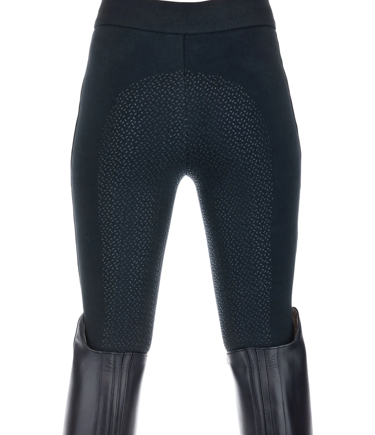 Legging d’équitation ultra confortable en jersey de coton. Excellent rapport qualité prix. Fond intégral en silicone. Idéal pour les débutants. Ceinture élastiquée pour un enfilage rapide. 95 % coton, 5 % élasthanne.