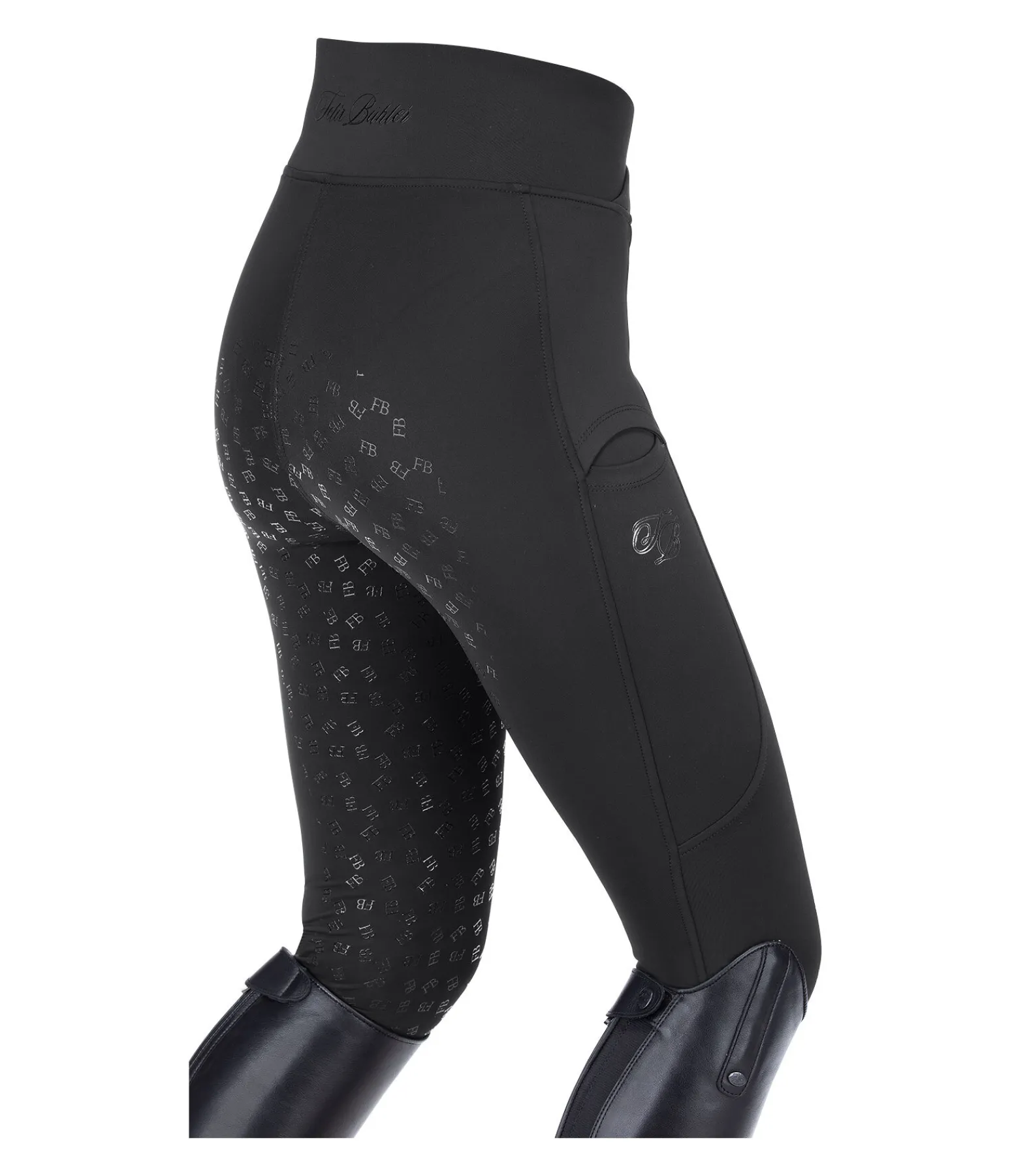 Legging d’équitation sportswear. Idéal pour toutes les saisons. Matière stretch douce, respirante et extensible dans 4 directions. Séchage rapide. Fond intégral grip en silicone. Ceinture élastiquée. Bas de jambe extensible. Intérieur doux molletonné. 2 poches sur les cuisses pour téléphone portable. Logo Felix Bühler sur la poche droite et sur la ceinture à l’arrière. 78 % polyester, 22 % élasthanne.