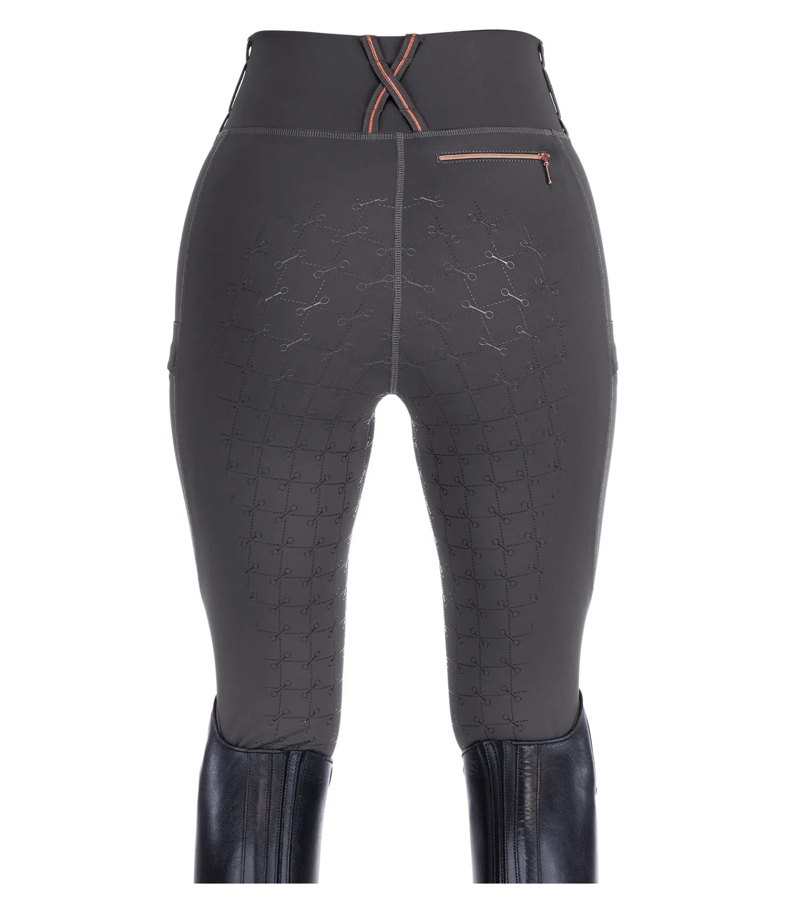 Legging d’équitation confortable à fond intégral grip en silicone avec motifs de mors. Matière respirante de grande qualité, extensible dans 4 directions. Séchage rapide. Soutien parfait et coupe ajustée. Ceinture extra large avec passants. 1 poche arrière zippée et 2 poches latérales pour téléphone portable. Aucune couture au niveau des genoux. Bas de jambe extensible. Imprimés Felix Bühler pailletés. 78 % polyester, 22 % élasthanne.