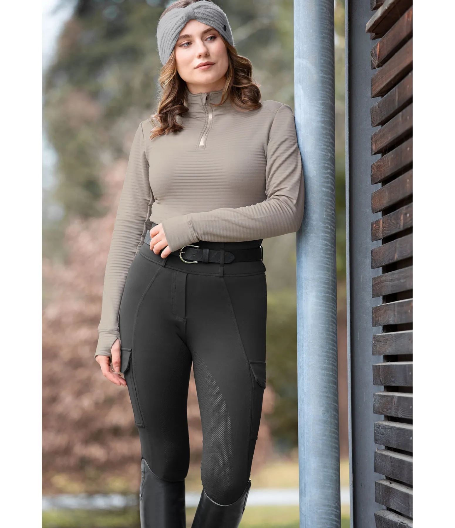 Legging d’équitation cargo tendance à fond intégral en silicone. Matière stretch douce, respirante et extensible dans 4 directions. Séchage rapide. 1 poche cargo avec boutons-pression sur chaque cuisse et 1 poche zippée supplémentaire. 1 poche arrière zippée. Imprimé siliconé Felix Bühler. Ceinture large avec passants. Sans coutures sur les genoux. Bas de jambe extensible. 78 % polyester, 22 % élasthanne.