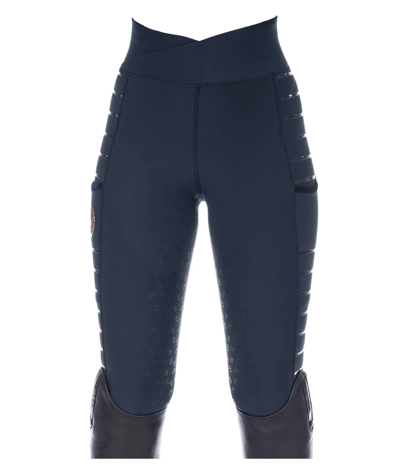 Legging d’équitation sportswear et thermique à fond intégral grip en silicone. Matière stretch douce, respirante et extensible dans 4 directions. Séchage rapide. Ceinture élastiquée. Bas de jambe extensible. Intérieur molletonné. Deux poches latérales. Logo Felix Bühler imprimé sur un côté. 78 % nylon, 22 % élasthanne.