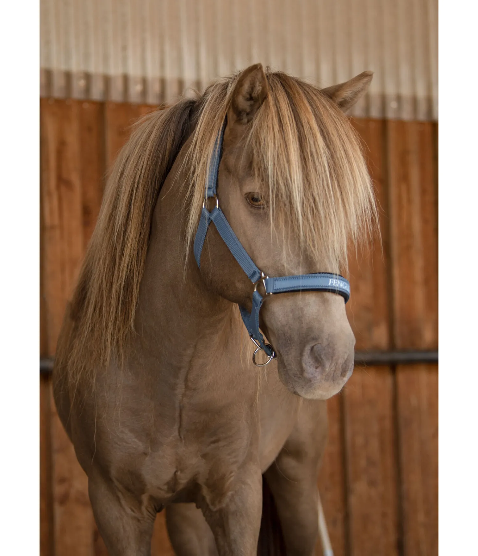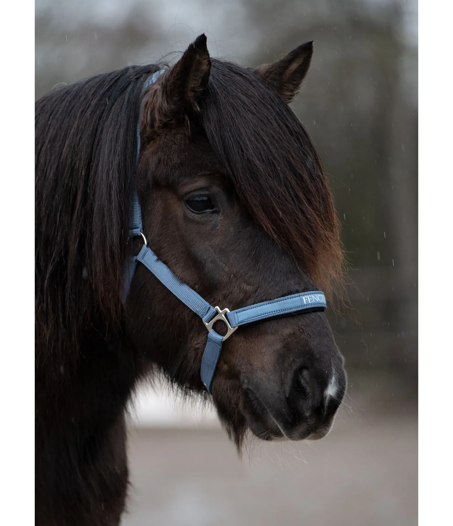 Licol élégant et sportif avec imprimé FENGUR argenté sur la muserolle. Têtière et muserolle avec doublure moelleuse en caoutchouc-chloroprène, réglables pour un ajustement optimal. Bouclerie argentée. 100 % polypropylène.