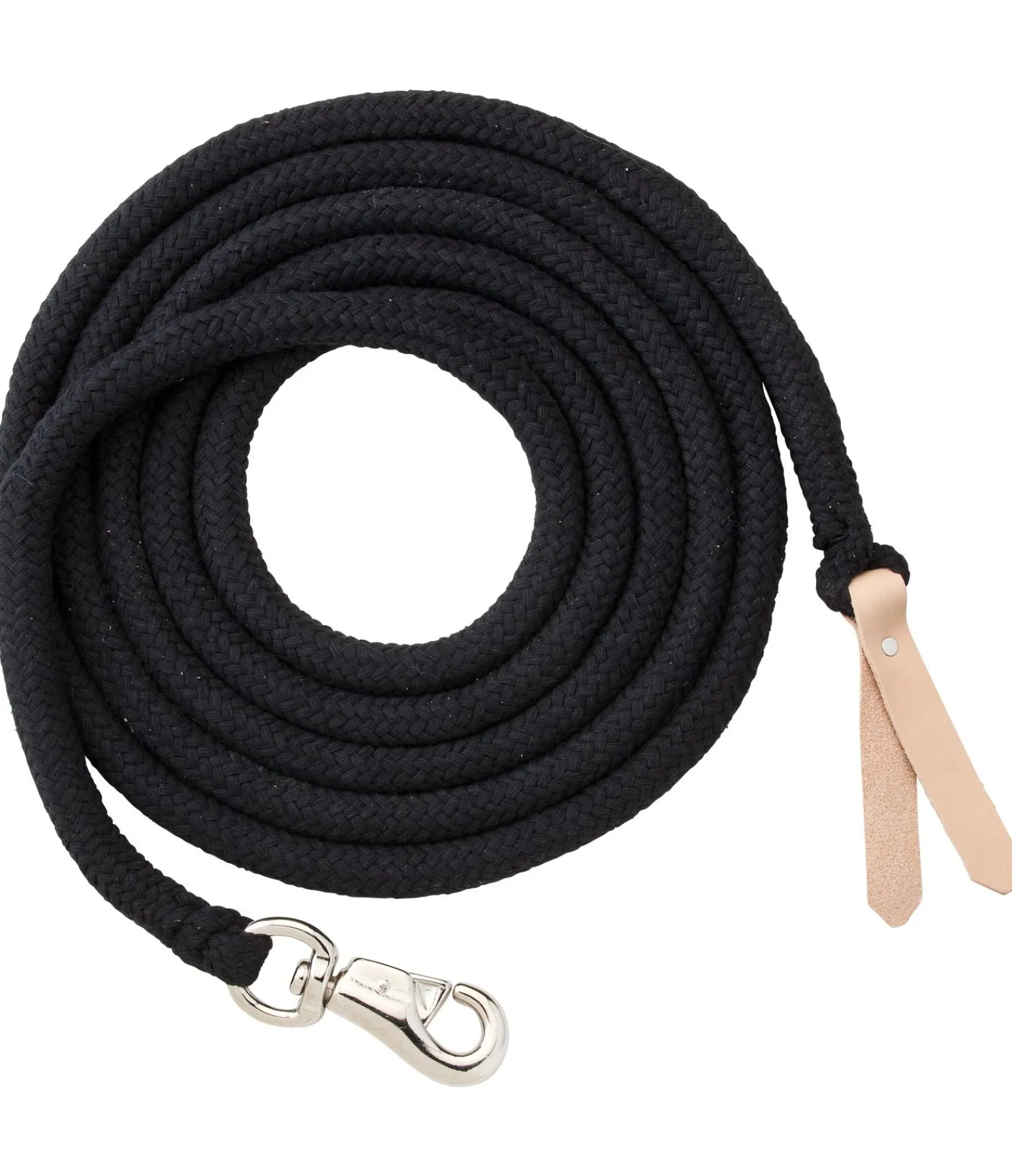 Très résistante grâce à l’épais coeur en polyester. Gaine en coton naturel anti-dérapant. Grâce au poids du bullsnap en laiton, qui peut s’ouvrir vers l’extérieur, les indications transmises au cheval sont encore plus claires. Avec embout en cuir. Disponible en 4 m.