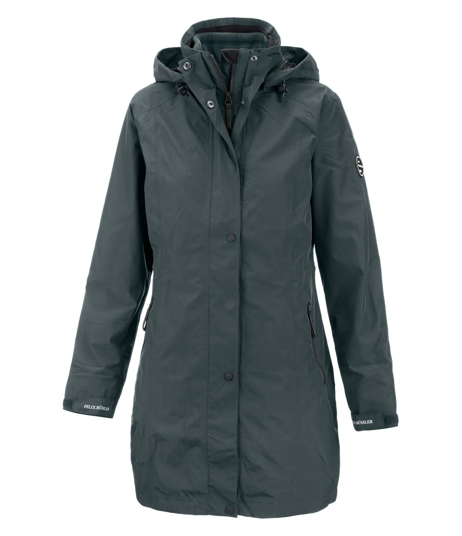 Le manteau d’équitation technique Felix Bühler offre 3 styles différents : tu peux porter chaque couche séparément ou ensemble ! Le manteau extérieur coupe-vent, imperméable (10.000 mm) et respirant possède une capuche réglable et amovible, pouvant être fixée dans le dos par bouton-pression. Fermeture à glissière double sens dissimulée avec protège-menton, 2 poches zippées imperméables, cordon de serrage à la taille, bas des manches réglables par patte auto-agrippante avec imprimé réfléchissant, 1 poche intérieure zippée, 1 longue fente cavalière avec sous-patte et fermeture à glissière à l’arrière. La doublure en polaire se fixe avec une fermeture à glissière et peut donc être portée avec ou sans le manteau extérieur. Cette doublure a un col montant, 2 poches zippées et une fente cavalière avec fermeture à glissière à l’arrière. 100 % polyester.