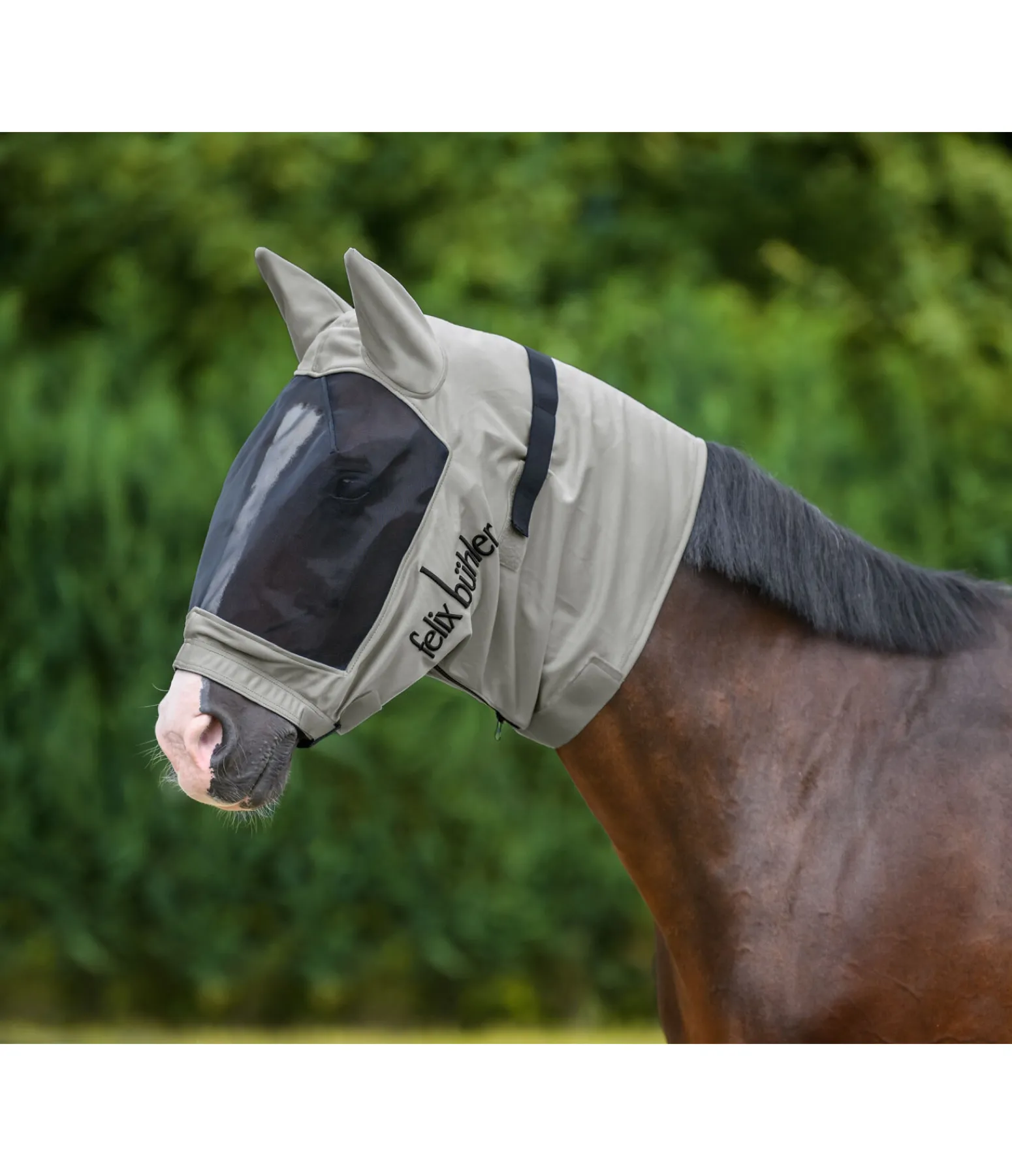 Long masque anti-eczéma ajusté. Matière technique extensible et respirante (protection UV +97 %) pour les chevaux particulièrement sensibles aux ‘insectes. Filet à mailles serrées avec couture d’espacement dans le champ de vision pour maintenir une distance de sécurité par rapport aux yeux, qui bloque au moins 50 % des rayons UV tout en garantissant une bonne visibilité. Ajustement idéal grâce au système de fermeture à glissière et de pattes auto-agrippantes élastiques. Se combine parfaitement avec la couverture anti-eczéma Felix Bühler Gibson II (réf. 414 241). 100 % polyester.