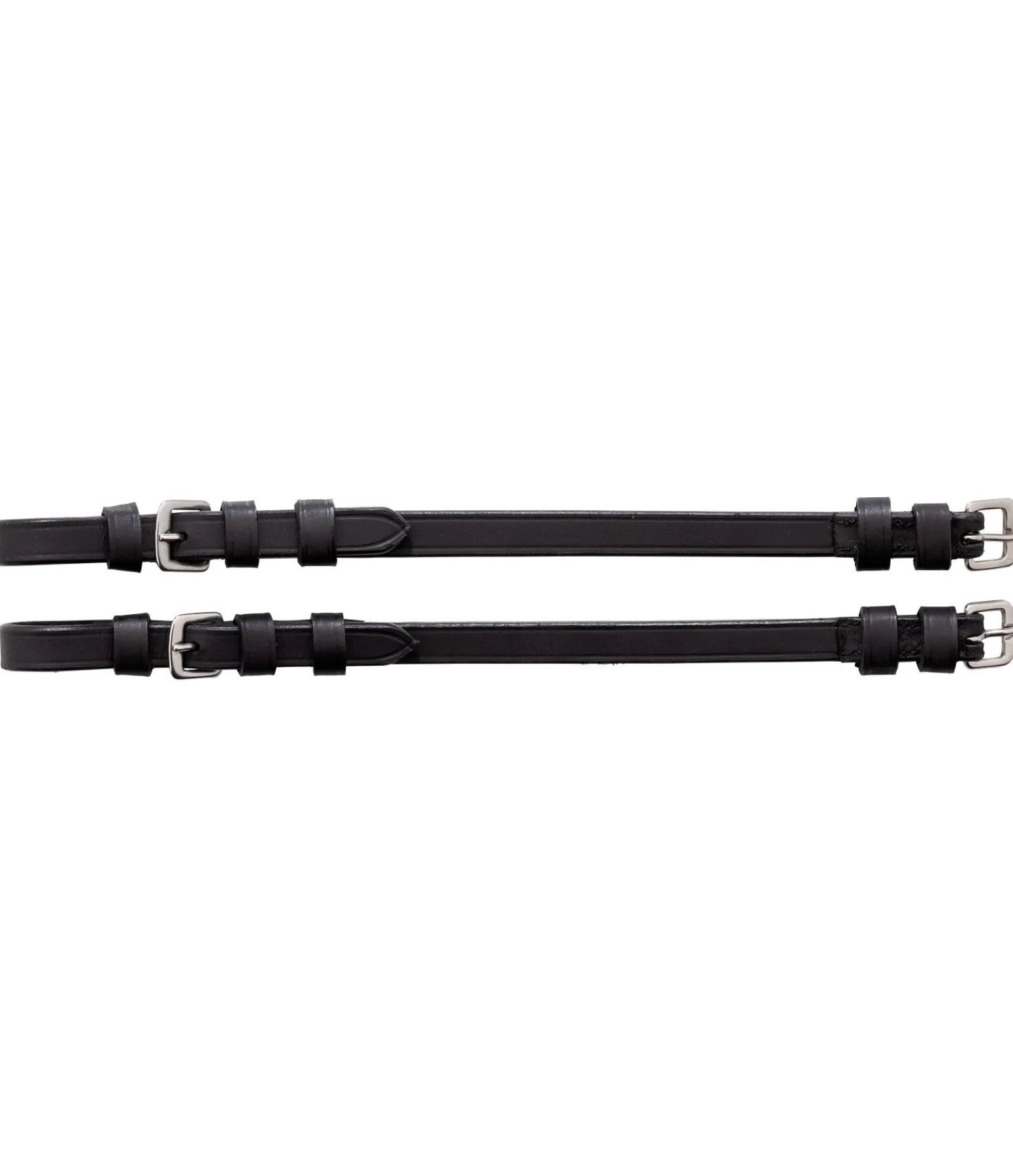 Montants de mors en cuir gras particulièrement souple. Bouclerie argentée. La paire.
