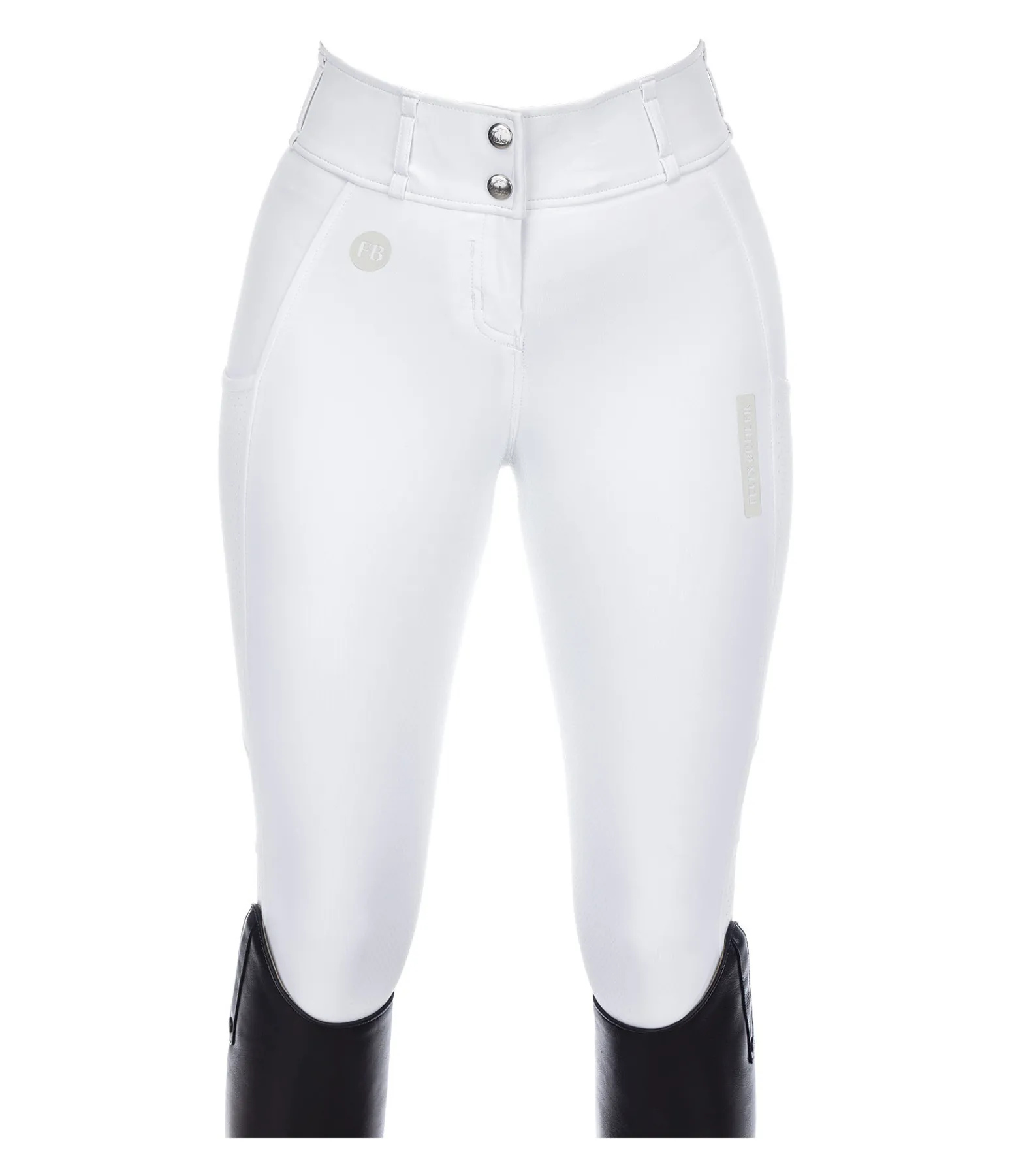 Pantalon d’équitation super confortable et léger à fond intégral grip en silicone. Stretch extensible dans 4 directions pour un effet sculptant garanti. Matière respirante à séchage rapide. Tissu très aéré grâce à la découpe laser sur les jambes. Large ceinture avec passants et deux boutons. Une poche pour téléphone portable sur chaque jambe. Deux fausses poches arrière. Aucune couture sur les genoux. Badges Felix Bühler. 78 % polyester, 22 % élasthanne.