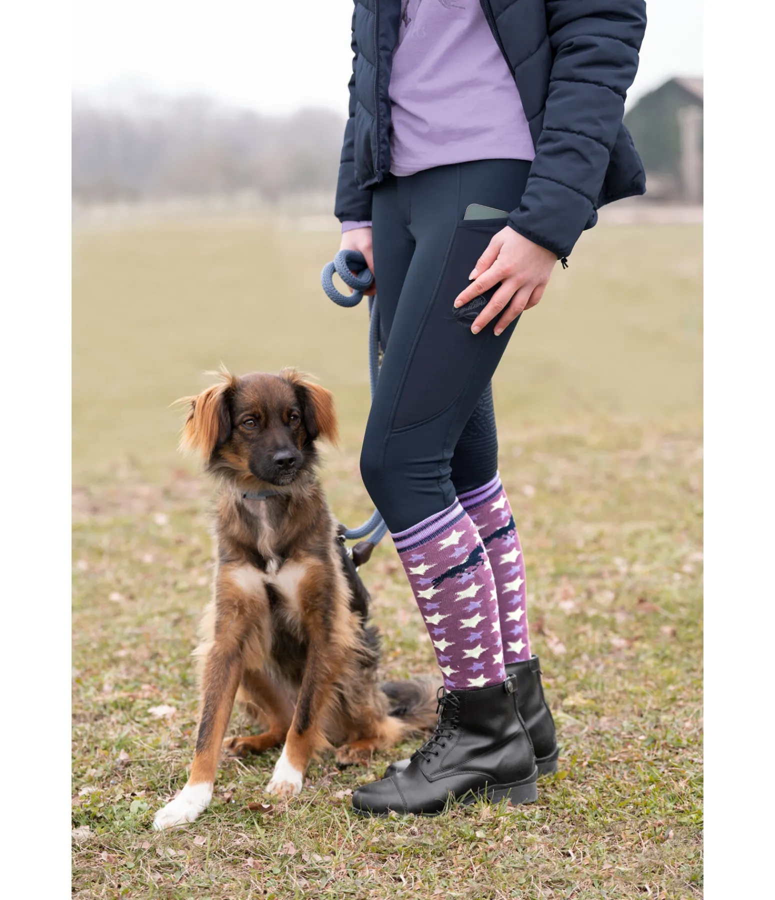 Pantalon d’équitation d’hiver thermique à fond intégral grip en silicone. Matière stretch respirante et extensible dans 4 directions. Séchage rapide. Intérieur molletonné. Ceinture élastiquée avec passants. Poche latérale pour téléphone portable. Inserts latéraux en mesh avec inscriptions et logo scintillants. 86 % polyester, 14 % élasthanne.