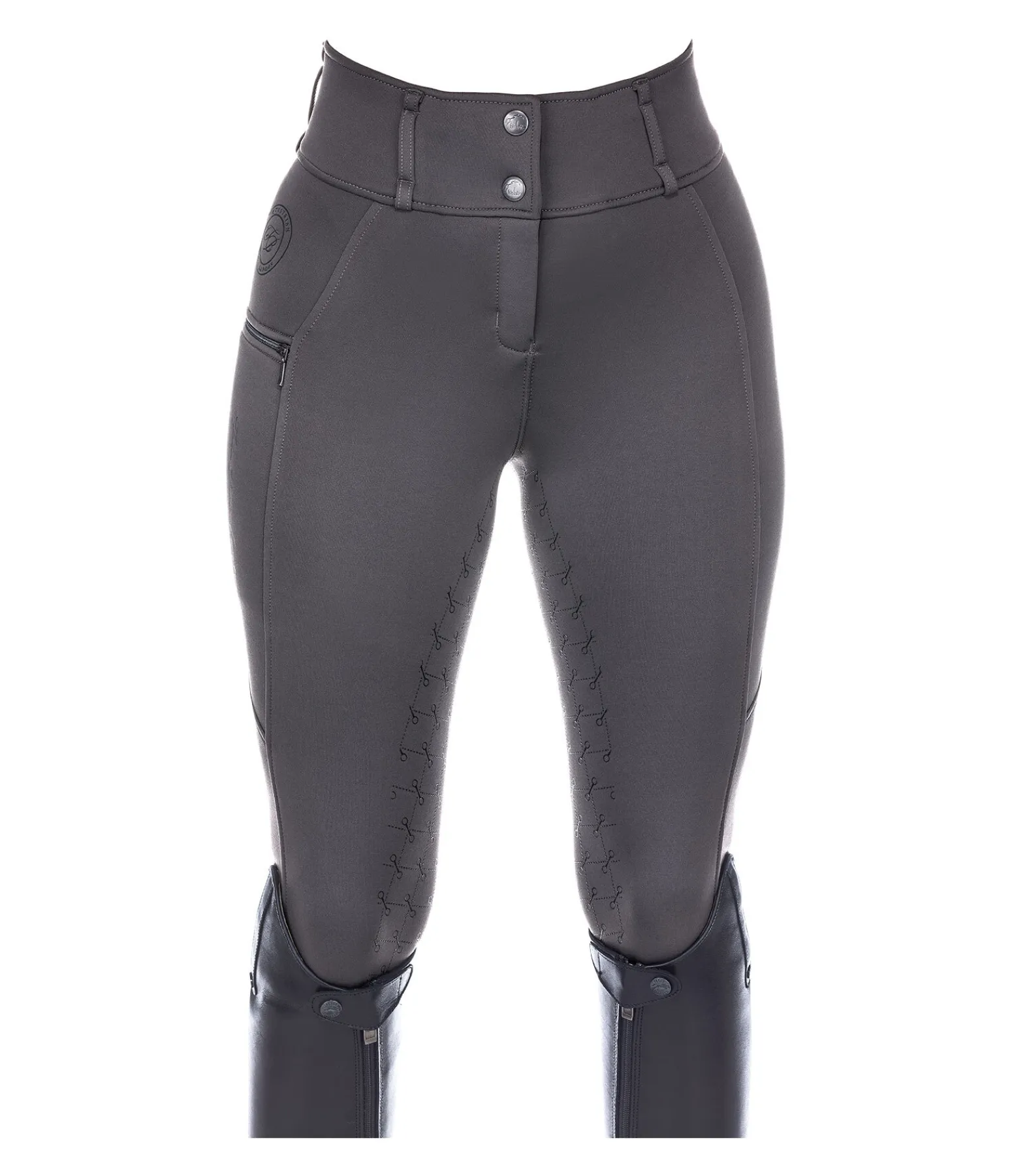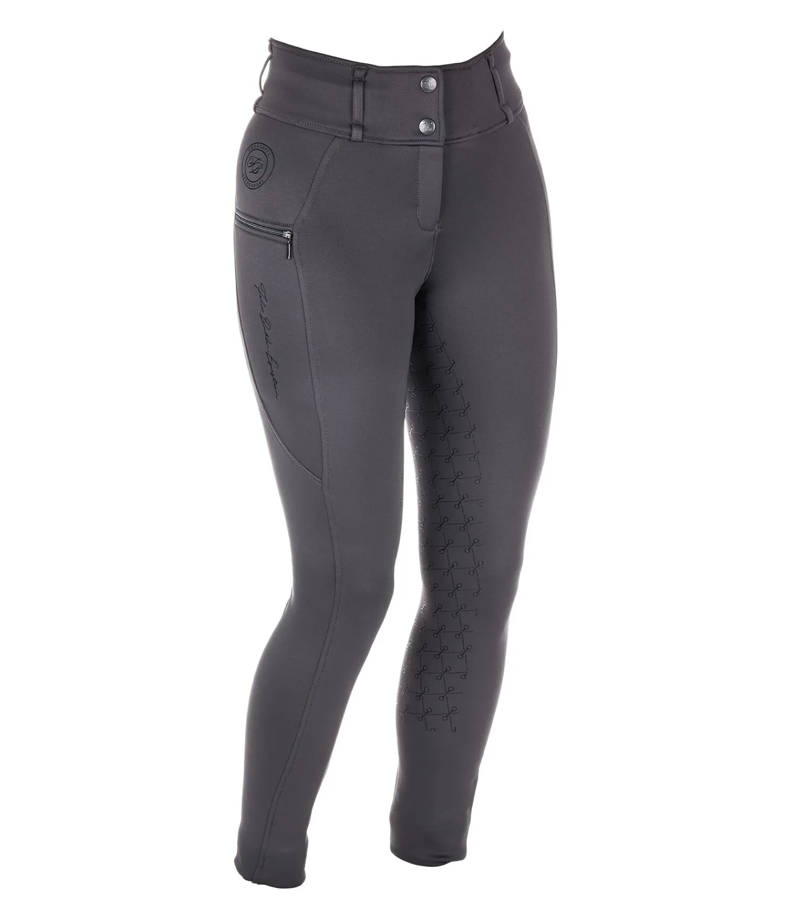 Pantalon d’équitation thermique avec fond intégral grip en silicone. Matière stretch respirante, extensible dans 4 directions. Séchage rapide. Intérieur molletonné. Imprimés Felix Bühler. Ceinture large avec passants. Une poche latérale zippée pour téléphone portable et une poche arrière zippée. Aucune couture au niveau des genoux. Bas de jambe extensible. 60 % polyester, 33 % polyamide, 7 % élasthanne.