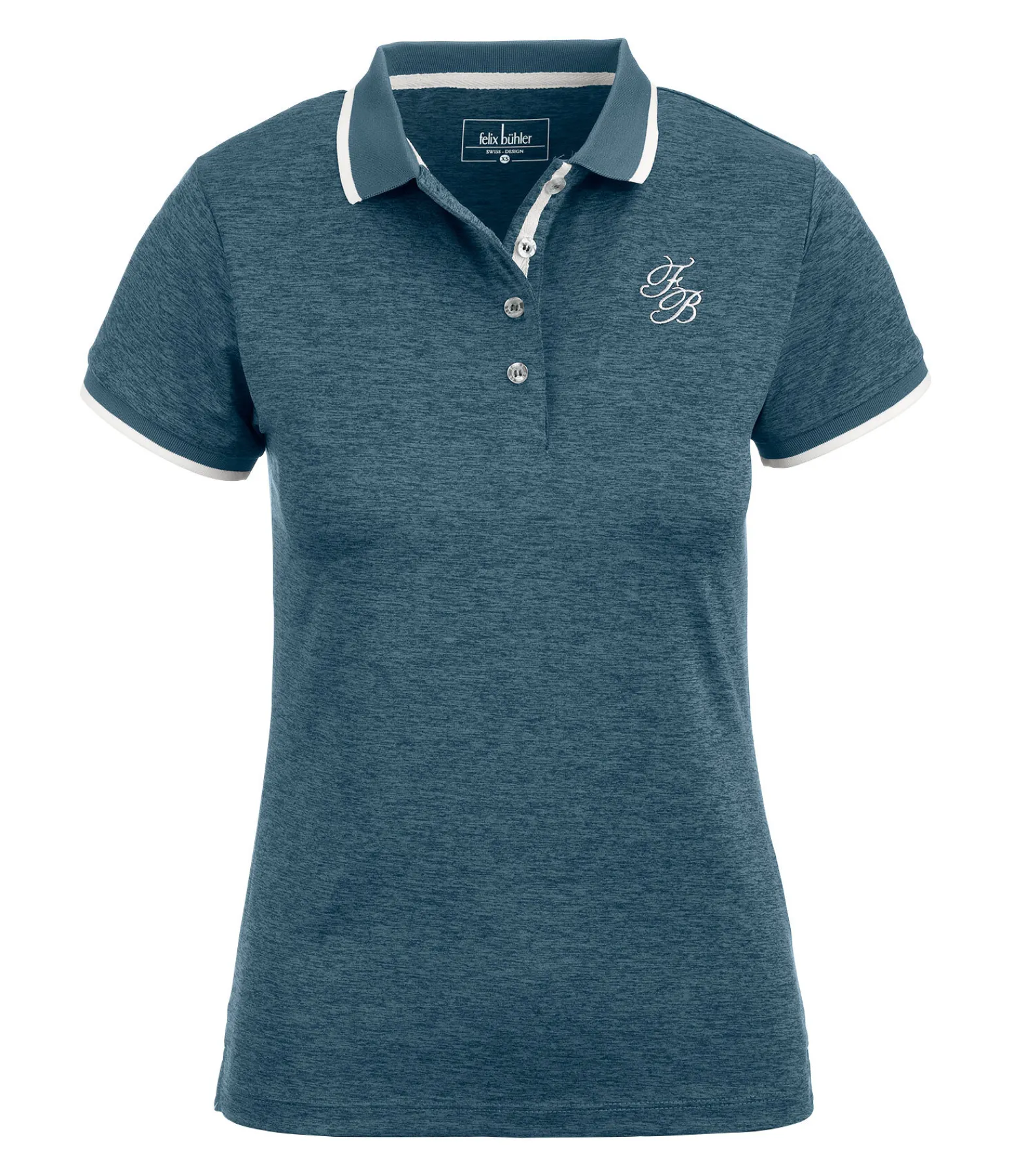 Polo d’équitation technique. Modèle classique à manches courtes en jersey extensible. Aspect chiné. Bord-côte avec liseré de couleur contrastante sur le col et le bas des manches. Patte de boutonnage. Logo brodé Felix Bühler sur la poitrine. Matière respirante à séchage rapide. 92 % polyester, 8 % élasthanne