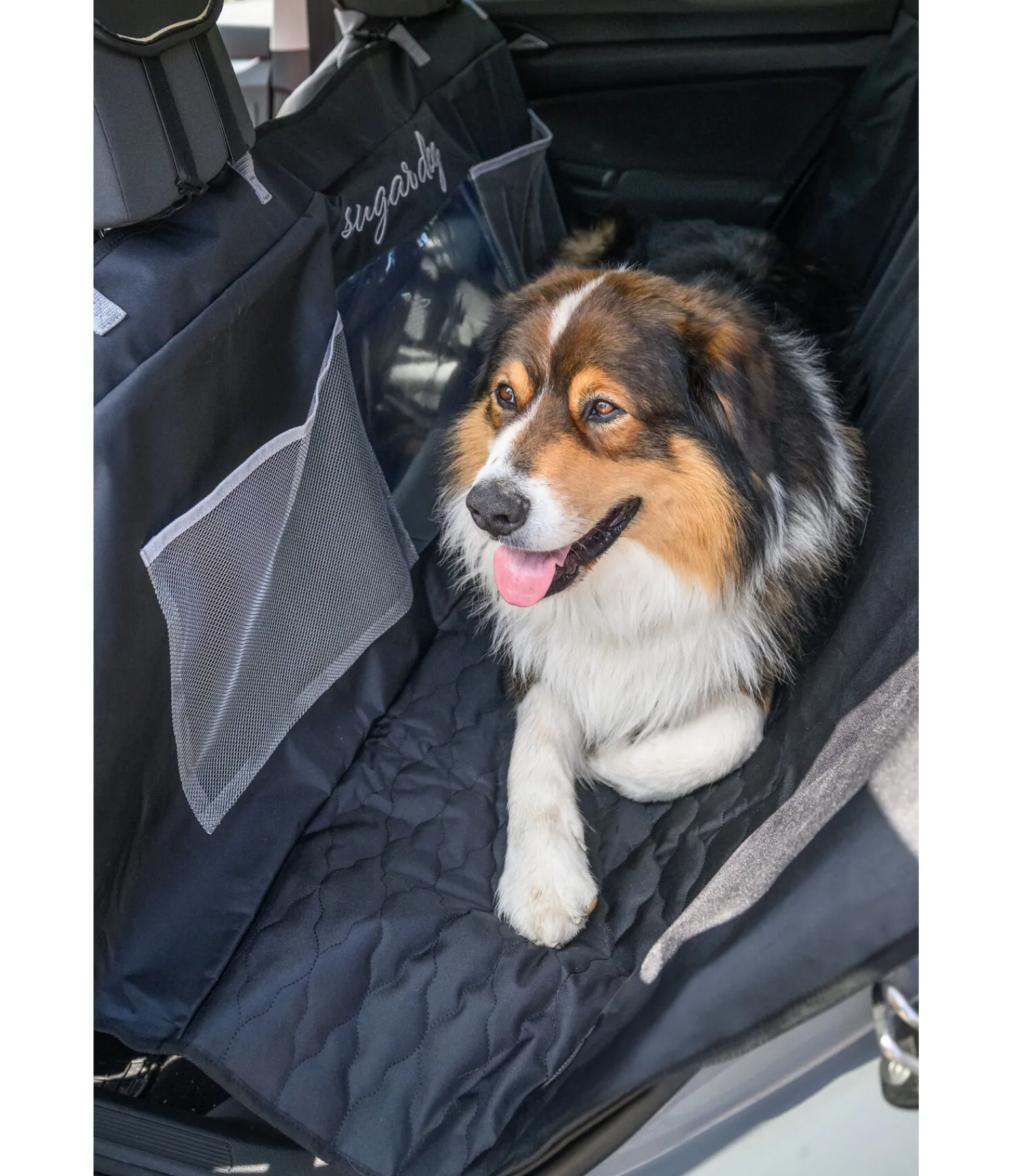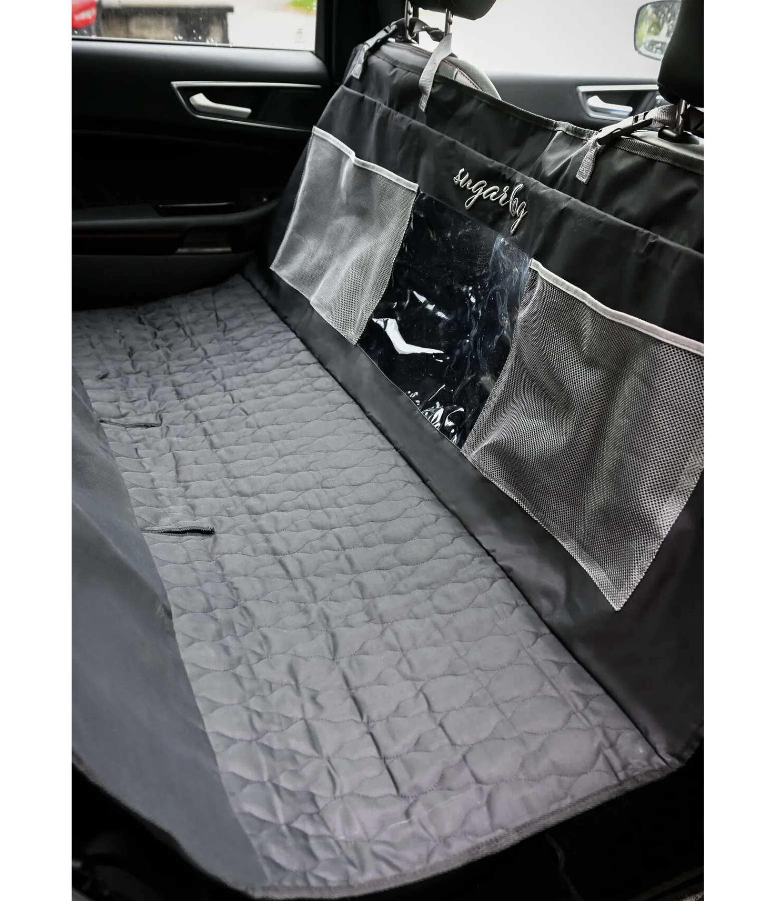 Protection efficace de la banquette arrière contre les poils de chien, les salissures et l’humidité. En polyester Oxford résistant. Simple et rapide à fixer aux appuis-tête grâce aux clips. La séparation permet de garder le chien à sa place en toute sécurité. Avec passages pour adaptateurs de ceinture de sécurité. Surface de couchage avec matelassage losange et rembourrage léger très confortable. 2 grandes poches en filet et hublot vers l’avant. 150 x 145 cm.
