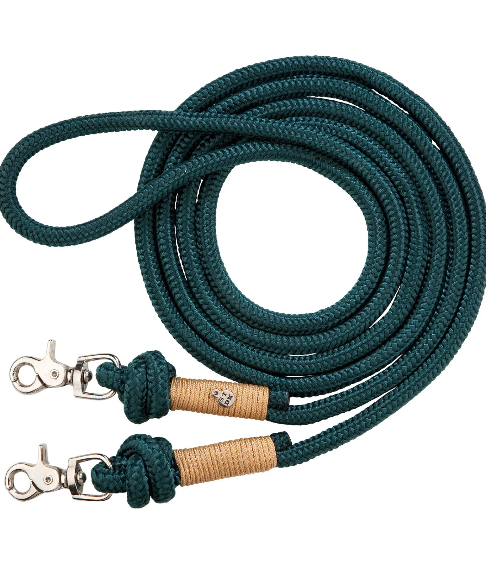 Rênes fermées particulièrement légères pour une connexion précise avec la bouche du cheval. Épaisseur 1,2 cm. Longueur (bout à bout) : 3 m. 100 % polyester.