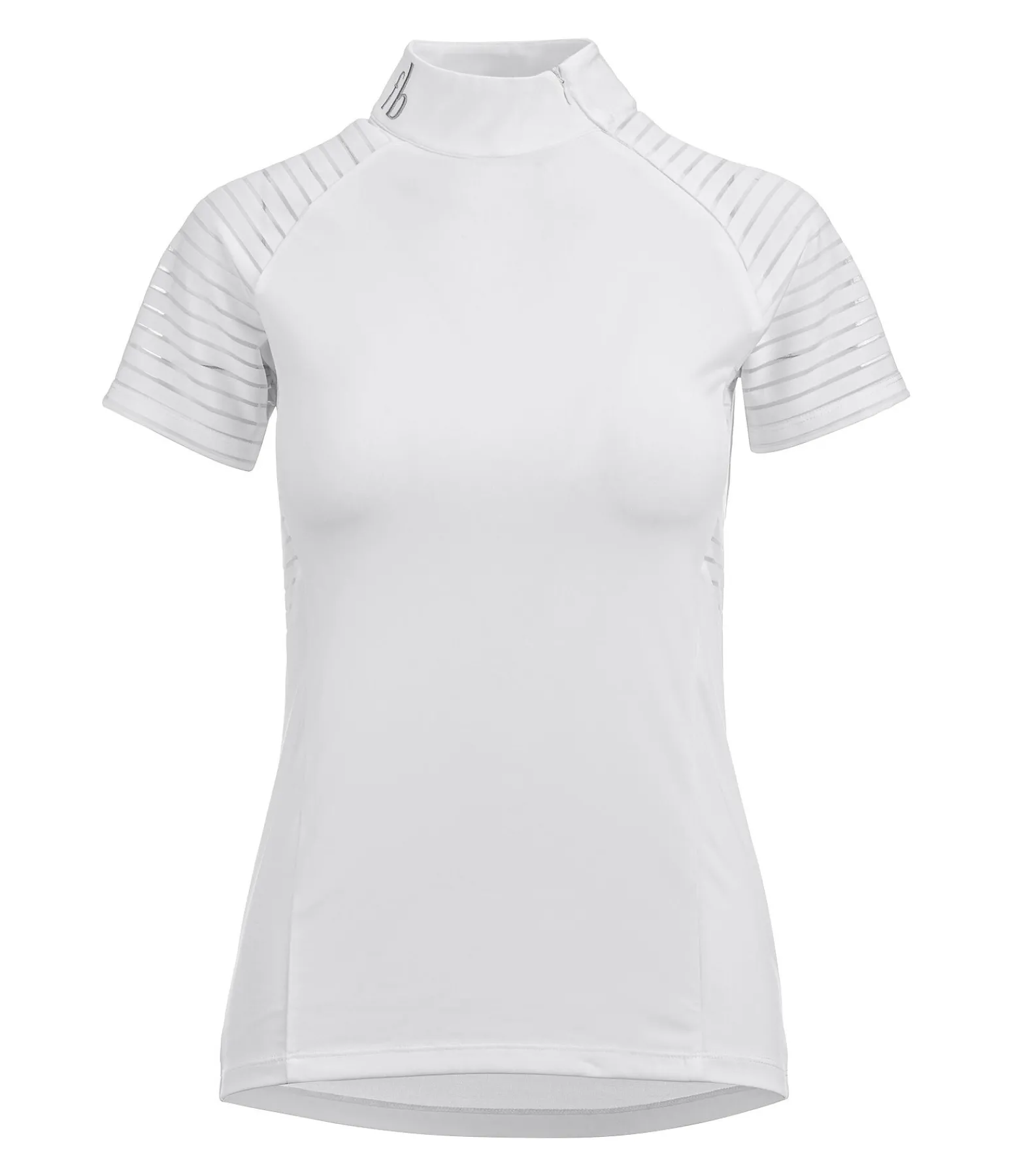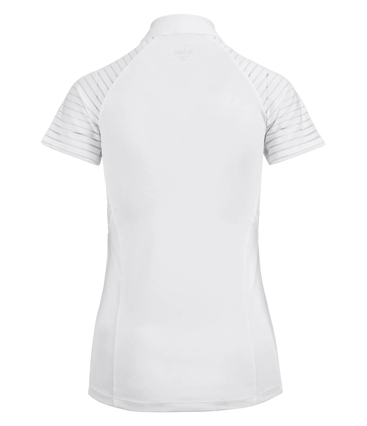 T-shirt de concours léger et technique. Sportswear. Matière respirante à séchage rapide. Empiècement en mesh rayé sur les manches raglan. Col officier blanc avec zip latéral et logo discret. 88 % polyester, 12 % élasthanne.