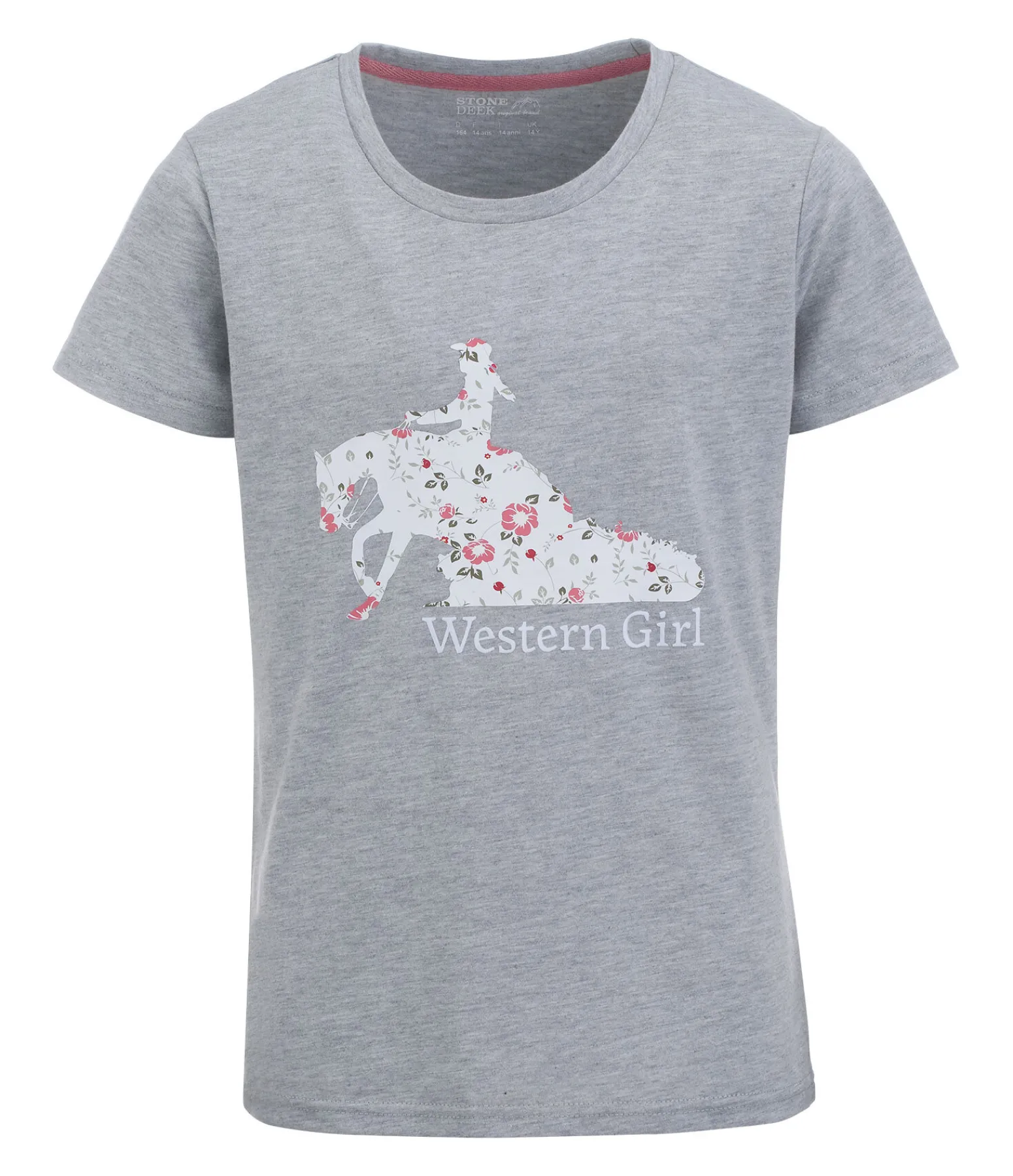 T-shirt léger et respirant avec motif western sur la poitrine. 65 % polyester, 35 % coton.