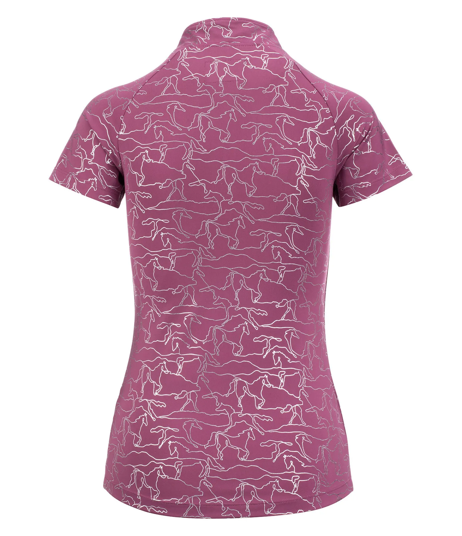 T-shirt technique. Manches raglan. Col montant zippé avec protège-menton. Imprimé argenté all-over. Matière respirante à séchage rapide. 88 % polyester, 12 % élasthanne.
