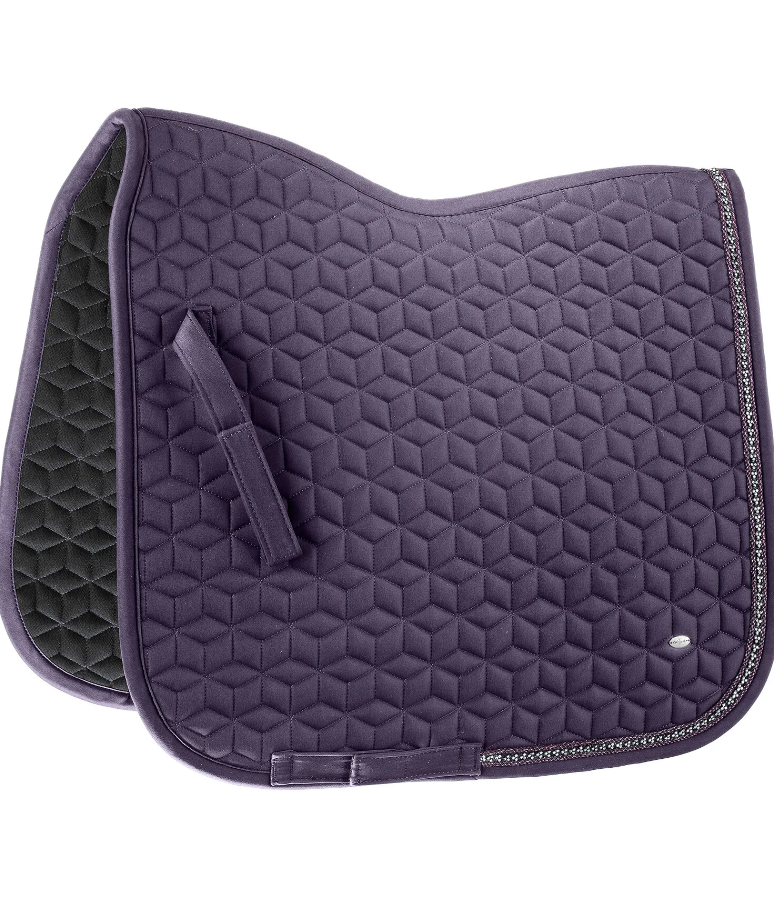Tapis scintillant orné de petits strass sur un double cordon décoratif brillant. Plaque logo discrète et petite surpiqûre. Passants de sangle et de contre-sanglons avec pattes auto-agrippantes pratiques. Dessous en matière Air mesh respirante et absorbant l’humidité. 100 % polyester.