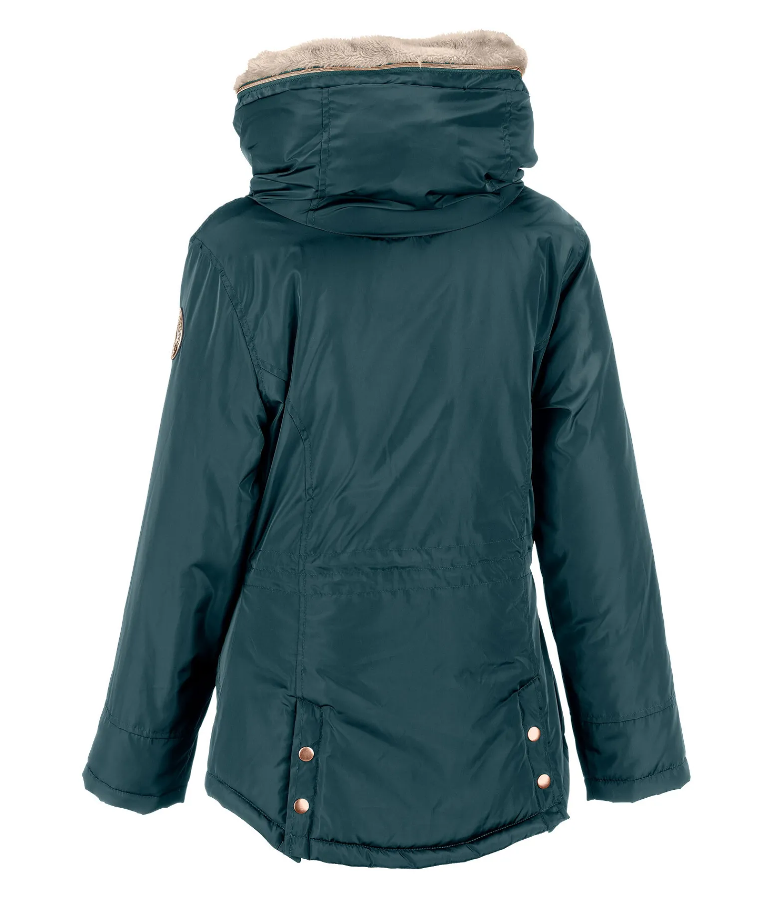Veste d’équitation d’hiver technique, déperlante et coupe-vent. Matière respirante et chaude. Large col et capuche amovible doublés en polaire Teddy douce. Capuche rétractable dans le large col. Garnissage imitation duvet. Fermeture à glissière double sens dissimulée avec protège-menton. Deux poches zippées latérales dissimulées et une poche intérieure. Taille ajustable. Deux fentes cavalières avec boutons-pression à l’arrière. Badge logo Felix Bühler sur la manche. Fermeture à glissière et boutons-pression rose doré. 100 % polyester.