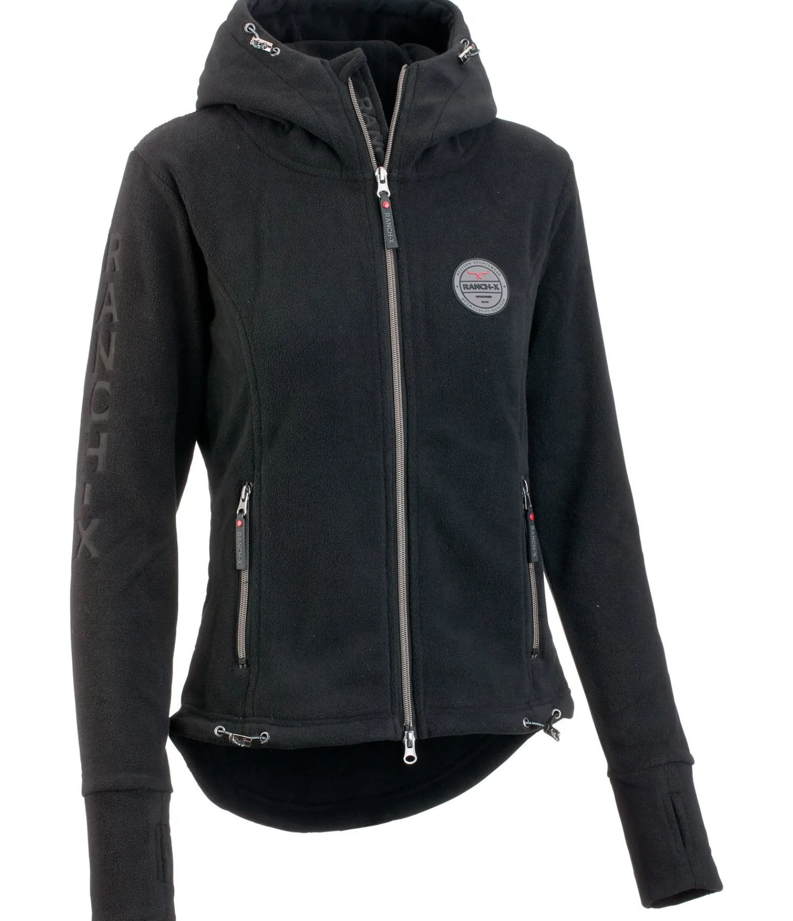Veste à capuche chaude en polaire très douce. Manches extra-longues avec passe-pouce. Coupe plus longue à l’arrière pour protéger le bas du dos. Fermeture à glissière double sens. Capuche et taille réglables. Logo en relief sur la manche. 100 % polyester.