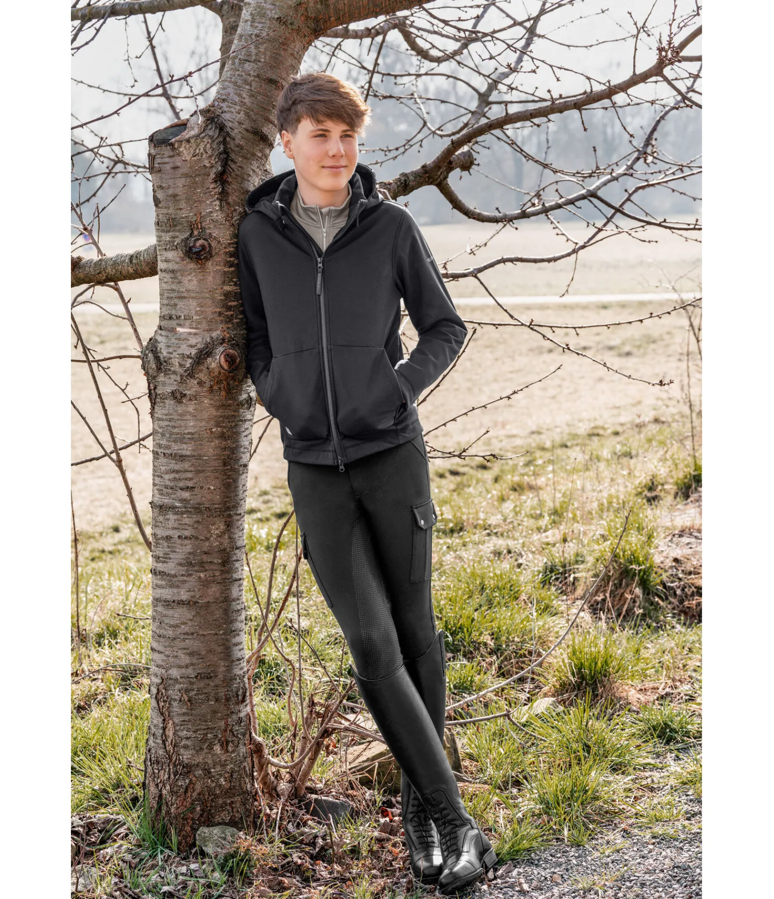 Veste softshell extensible à capuche dans un style sportswear. Coupe décontractée et doublure en polaire Teddy extra-douce. Déperlante, coupe-vent et respirante. Fermeture à glissière double sens, 2 poches avant zippées, capuche amovible, imprimé logo Felix Bühler sur la manche et la poche avant. 94 % polyester, 6 % élasthanne.
