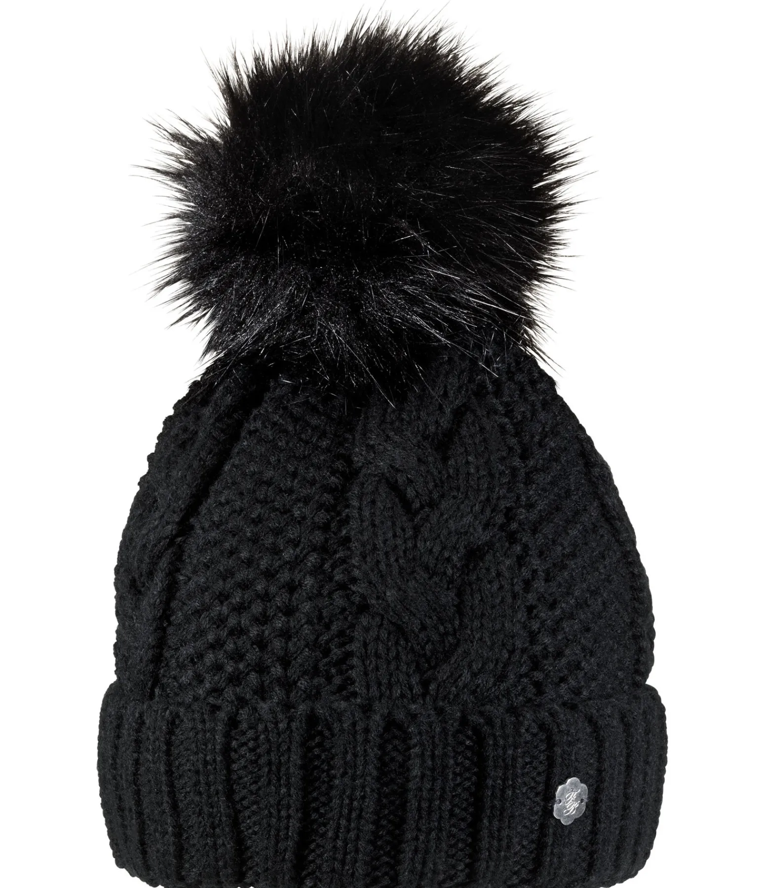 Bonnet à pompon confortable en maille torsadée. Doublure en polaire extra-douce. Extérieur 100 % polyacrylique, intérieur 100 % polyester. Lavage à la main.