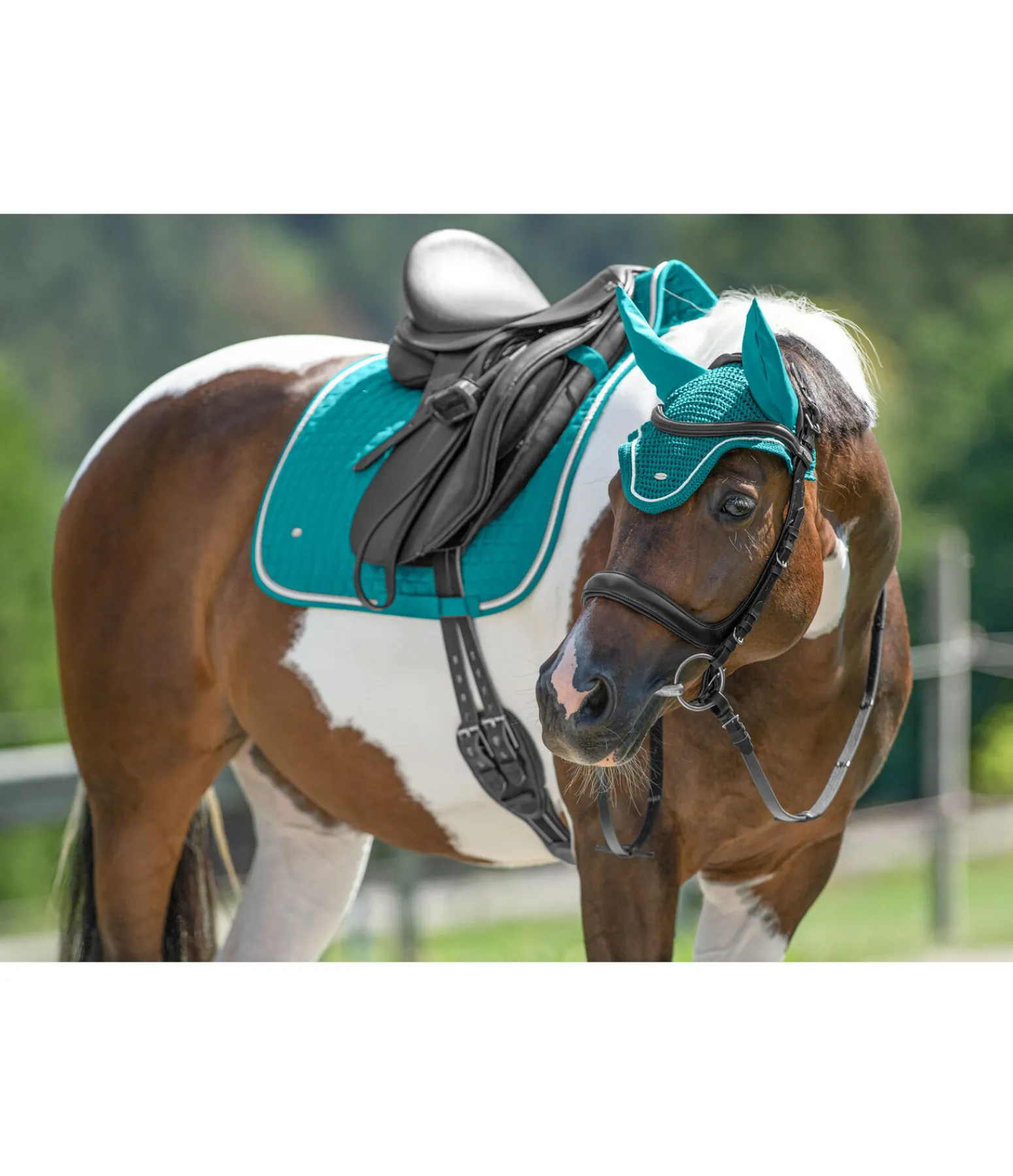 Bonnet anti-mouches classique en maille crochetée avec cordon décoratif satiné discret de couleur contrastante. Matière extensible aux oreilles. Petite plaque argentée filigrane avec logo gravé. Maille 100 % polyester, matière extensible 97 % polyester, 3 % élasthanne.