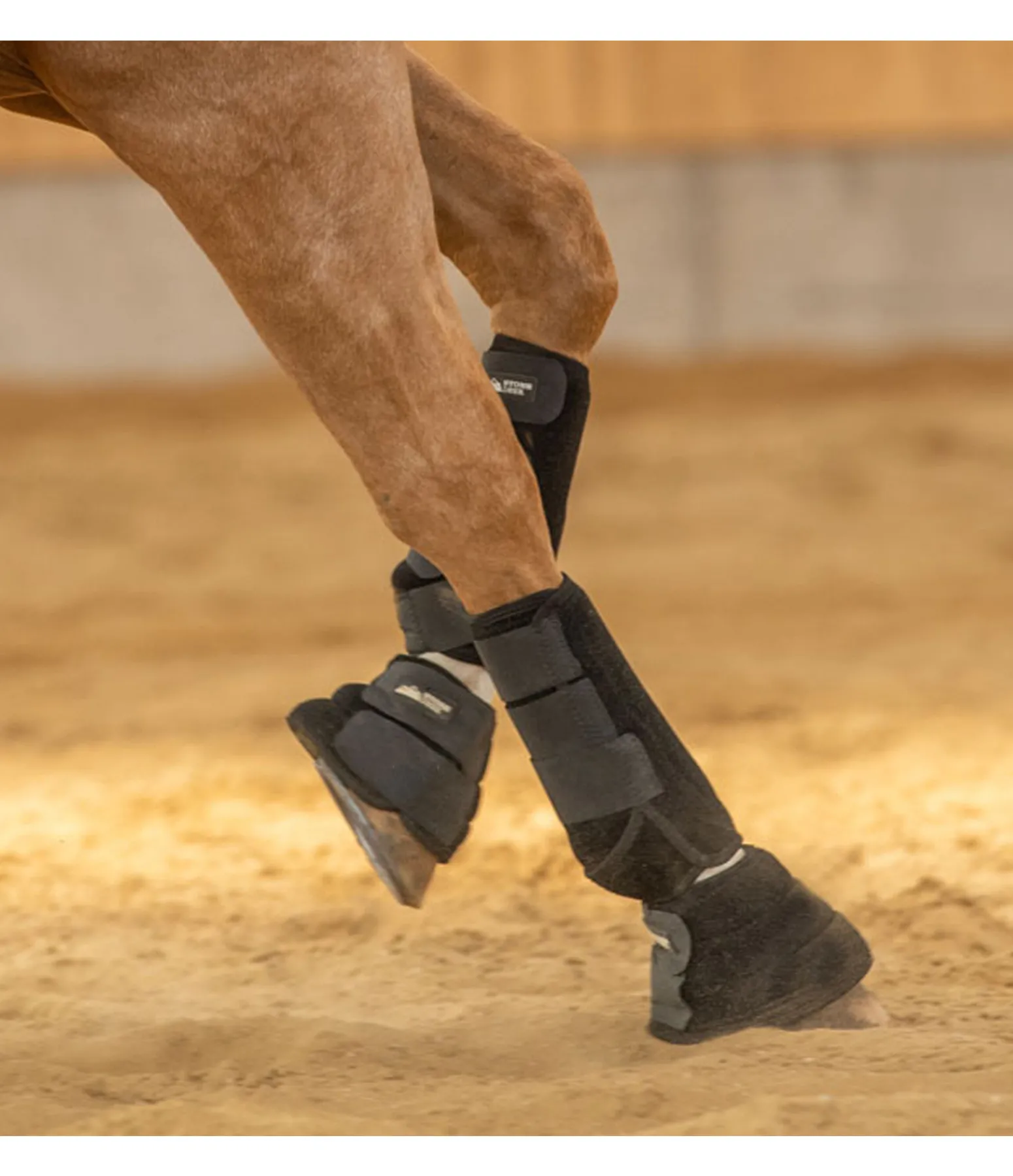 Guêtres western robustes pour l’entraînement quotidien et les concours. Doublure respirante, bordures en élasthanne résistant et pattes auto-agrippantes durables pour un maintien sûr. Faciles d’entretien, elles offrent une protection optimale contre les blessures des membres.Vendues par paire.