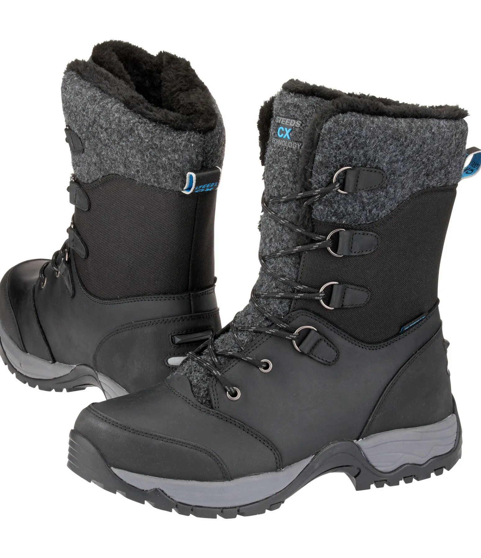 Bottes d’hiver imperméables avec coque en cuir de vachette huilé pleine fleur et tige en matière textile polaire. Doublure complète en polaire Teddy douillette et chaude (100 % polyester). La membrane imperméable ainsi que la languette cousue sur les côtés empêchent la neige et l’eau de pénétrer dans la chaussure. La semelle intérieure CX Technology possède les meilleures propriétés d’amortissement et assure un confort optimal. Le système de laçage rapide permet un chaussage et déchaussage rapide. Autres caractéristiques : renfort au talon et aux orteils, taquet d’éperon et élément réfléchissant à l’arrière.