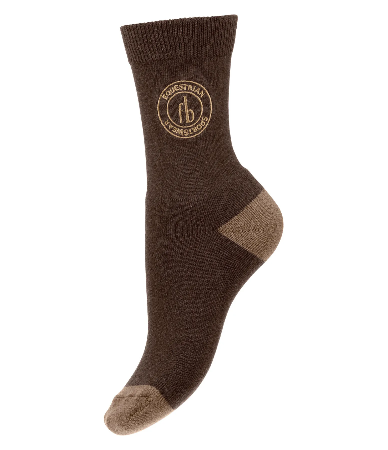 Chaussettes d’hiver confortables. Broderie Felix Bühler sur le côté. Dessous du pied en bouclettes. 85 % coton, 12 % polyester et 3 % élasthanne.