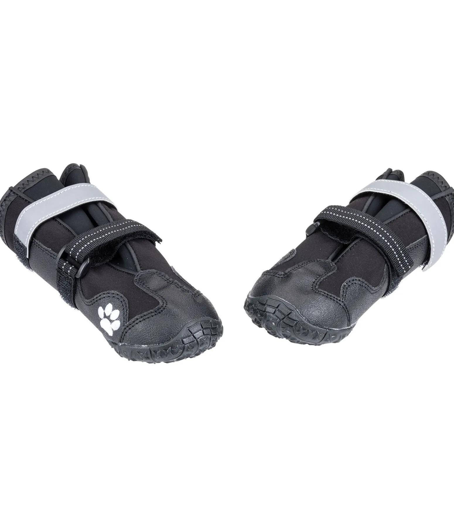 Chaussons extra hauts, déperlants et résistants à la neige. Pour protéger les pattes du chien de la neige, du froid et du sel. Semelle adhérente et antidérapante. Deux pattes auto-agrippantes avec éléments réfléchissants pour adapter le chausson à la patte du chien. Doublure intérieure douce pour protéger des irritations dues aux frottements en cas de port prolongé. Chaussons 100 % polyester, semelle 100 % caoutchouc thermoplastique.