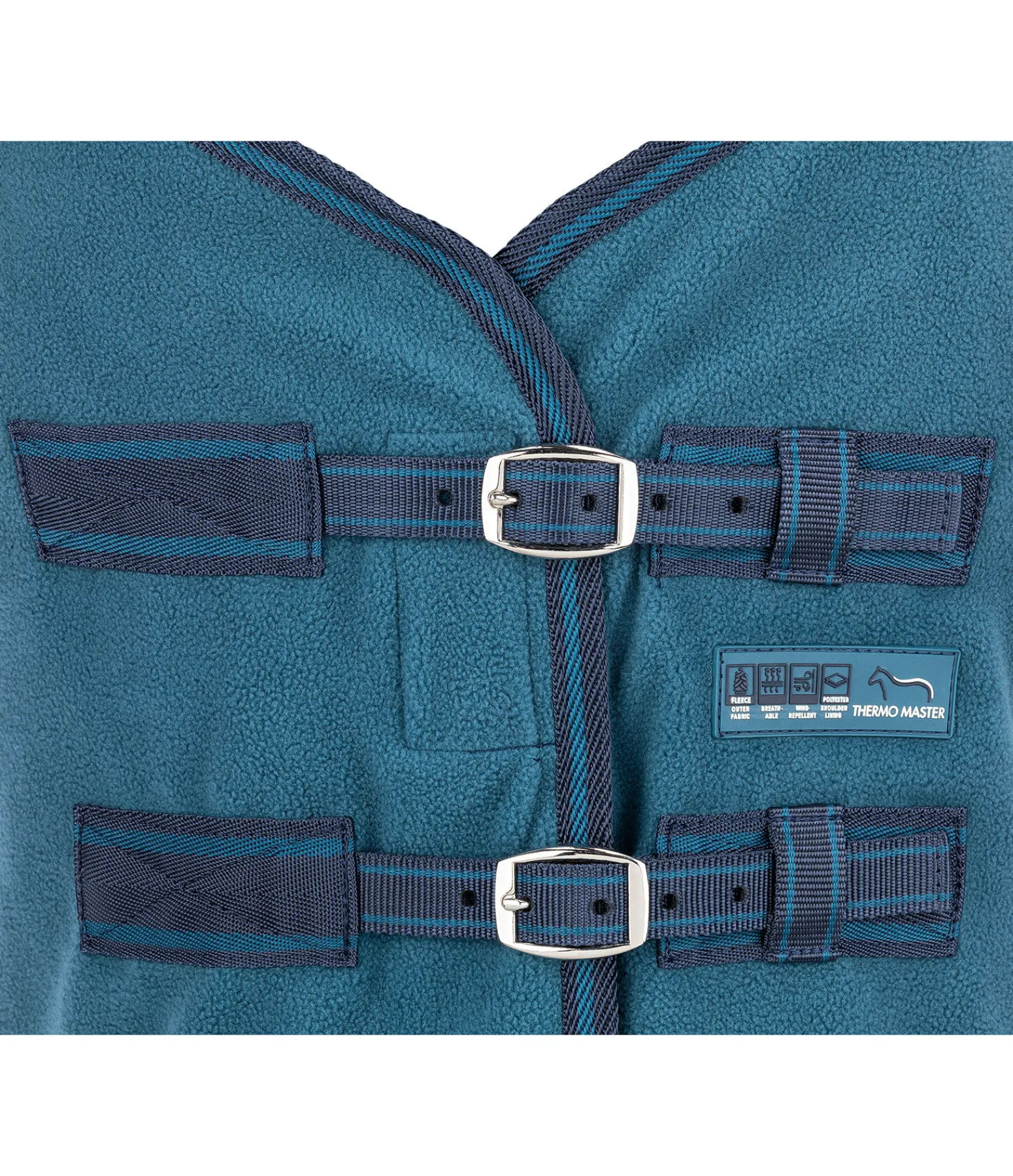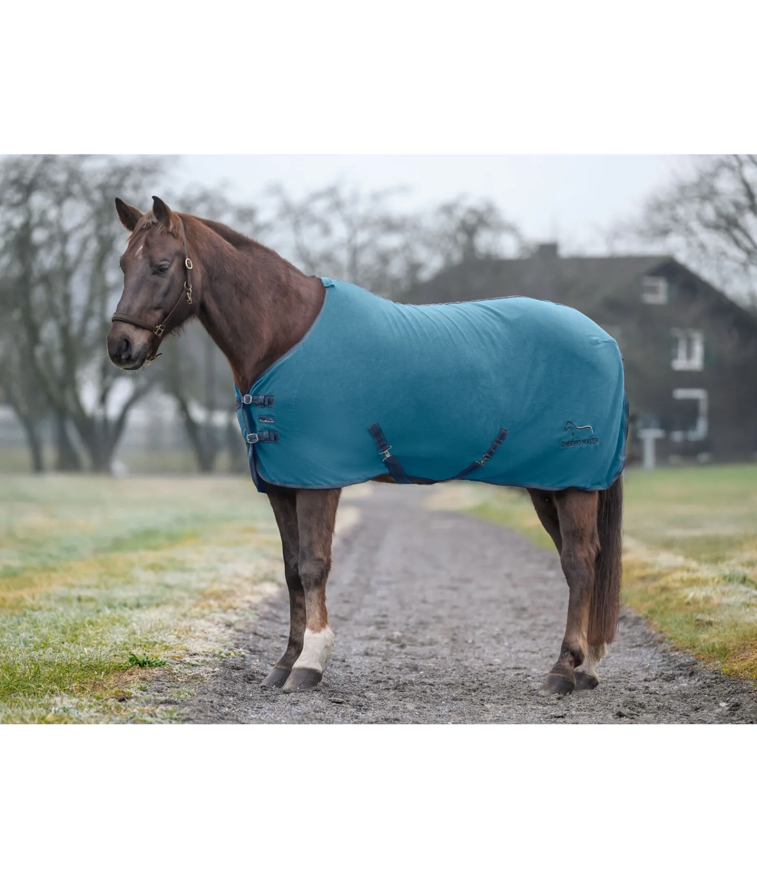 Chemise séchante conçue en polaire anti-bouloche respirante de qualité supérieure. Excellent rapport qualité-prix. Évacue efficacement l’humidité du corps du cheval. Avec double fermeture de poitrail, sursangles croisées réglables, rembourrage en polaire au garrot, doublure en polyester lisse au niveau des épaules. Courroie de queue. 100 % polyester.