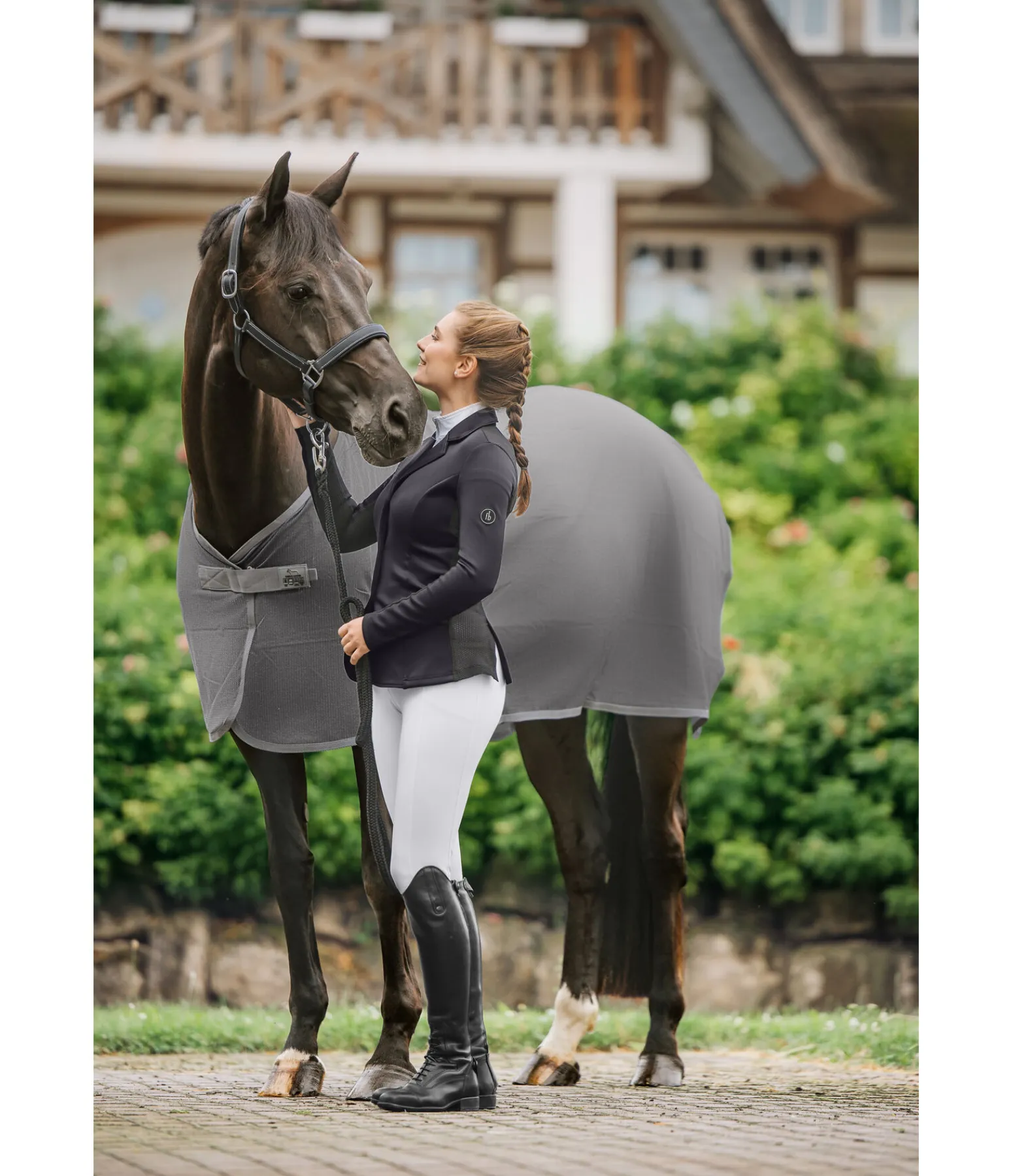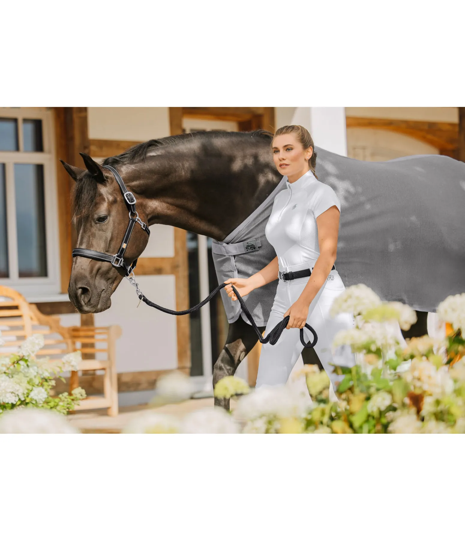 La chemise anti-mouches peut aussi être élégante ! Couverture simple avec fermeture de poitrail simple dissimulée à crochet en T. Idéale pour être utilisée en compétition, au quotidien à l’écurie comme chemise séchante, après l’entraînement, pour le broutage, les promenades ou chez le maréchal-ferrant. Filet en maille fine avec fil intégré scintillant au soleil. Doublure lisse protégeant la robe et les crins au niveau des épaules. Cordon de queue.100 % polyester.