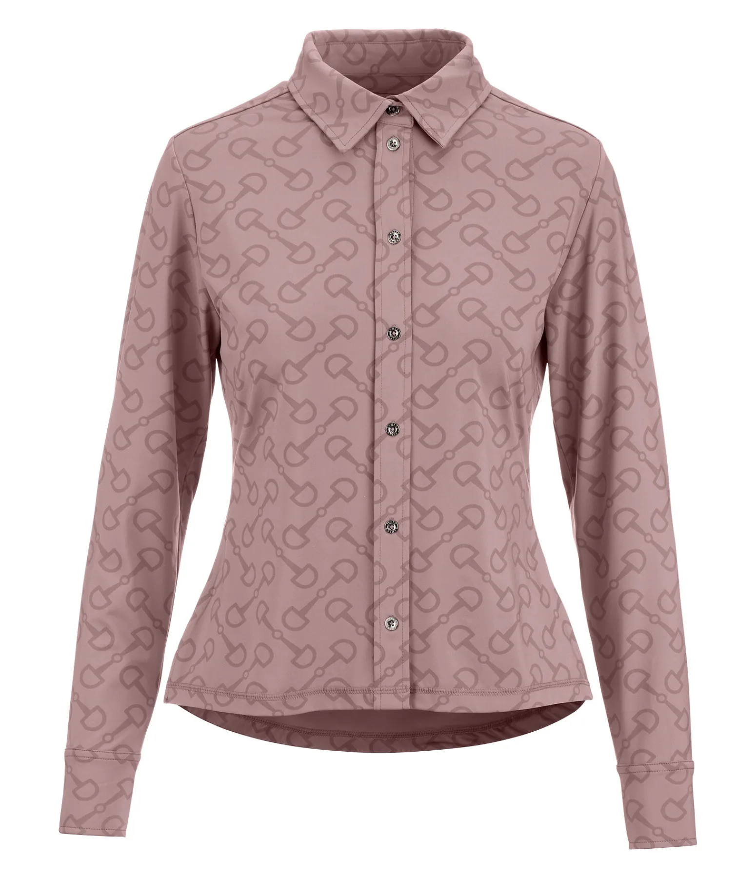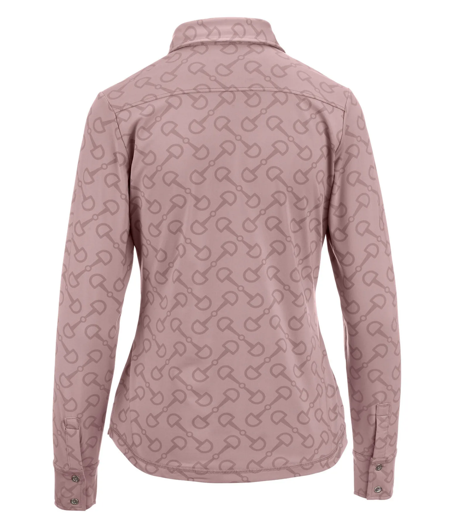 Élégante chemise extensible en matière technique respirante et à séchage rapide avec imprimé all-over à motif mors. Patte de boutonnage et boutons en bas des manches. 85 % polyester, 15 % élasthanne.