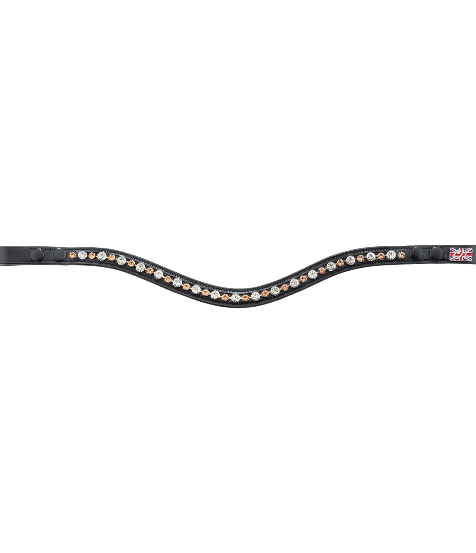 Frontal vague en cuir véritable avec petits et gros strass. Facile à fixer grâce aux boutons-pression.
