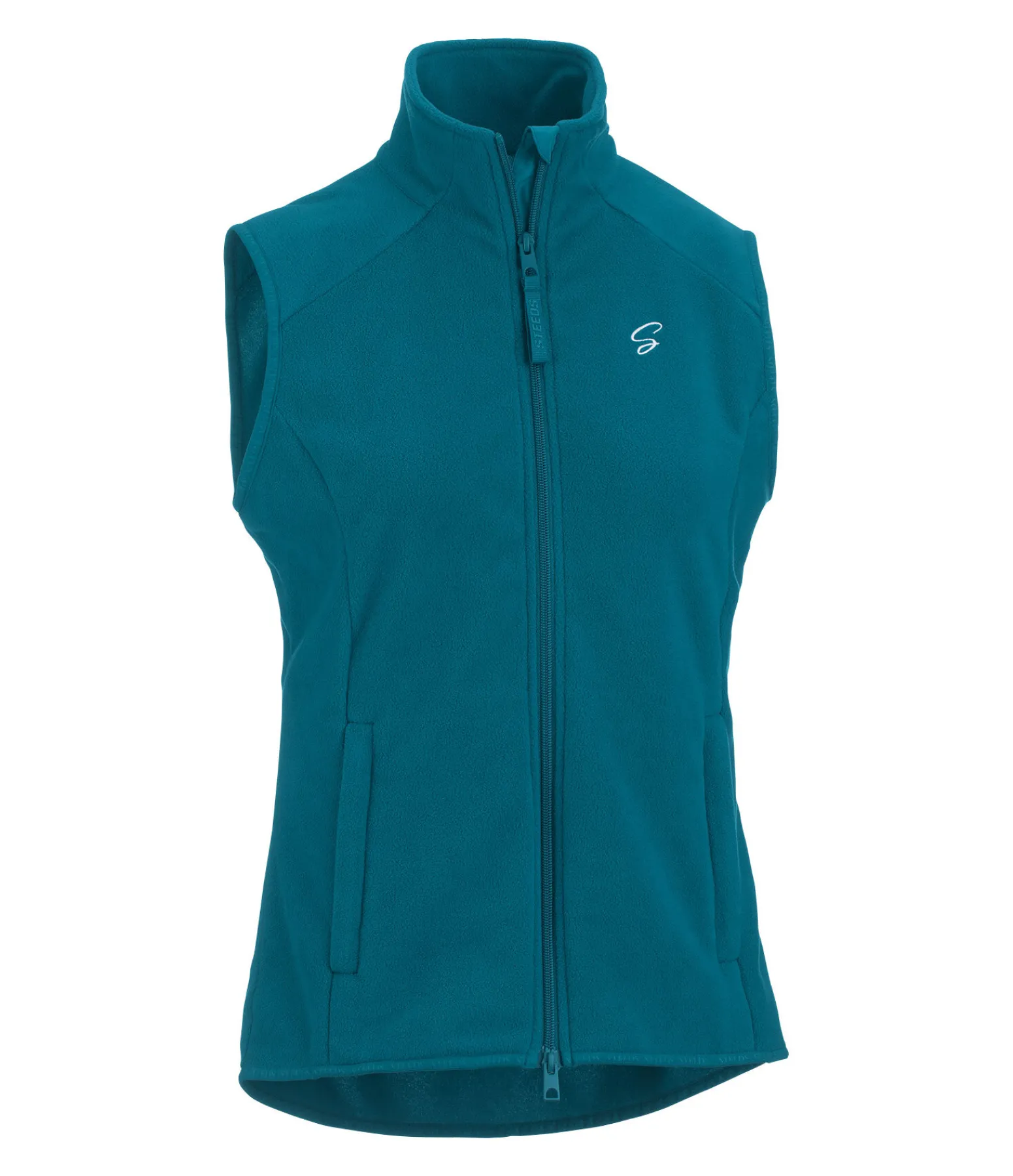 Gilet polaire basique, doux et chaud. Col montant. Coupe cintrée et dos légèrement plus long. Fermeture à glissière à double sens avec protège-menton. 2 poches zippées dissimulées, liseré avec inscriptions STEEDS aux poignets et à la taille. Broderie STEEDS sur la poitrine. Traitement anti-bouloches. 100 % polyester.