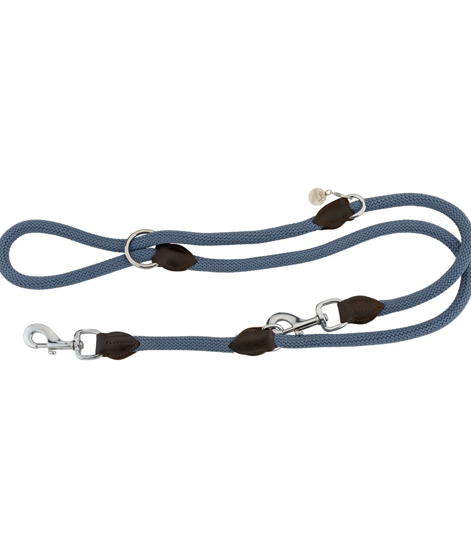 Elégante laisse en polypropylène doux avec des extrémités en cuir fin huilé. Trois possibilités d’attache. Avec un imprimé patte subtil. Longueur 200 cm. Convient pour les grands chiens.