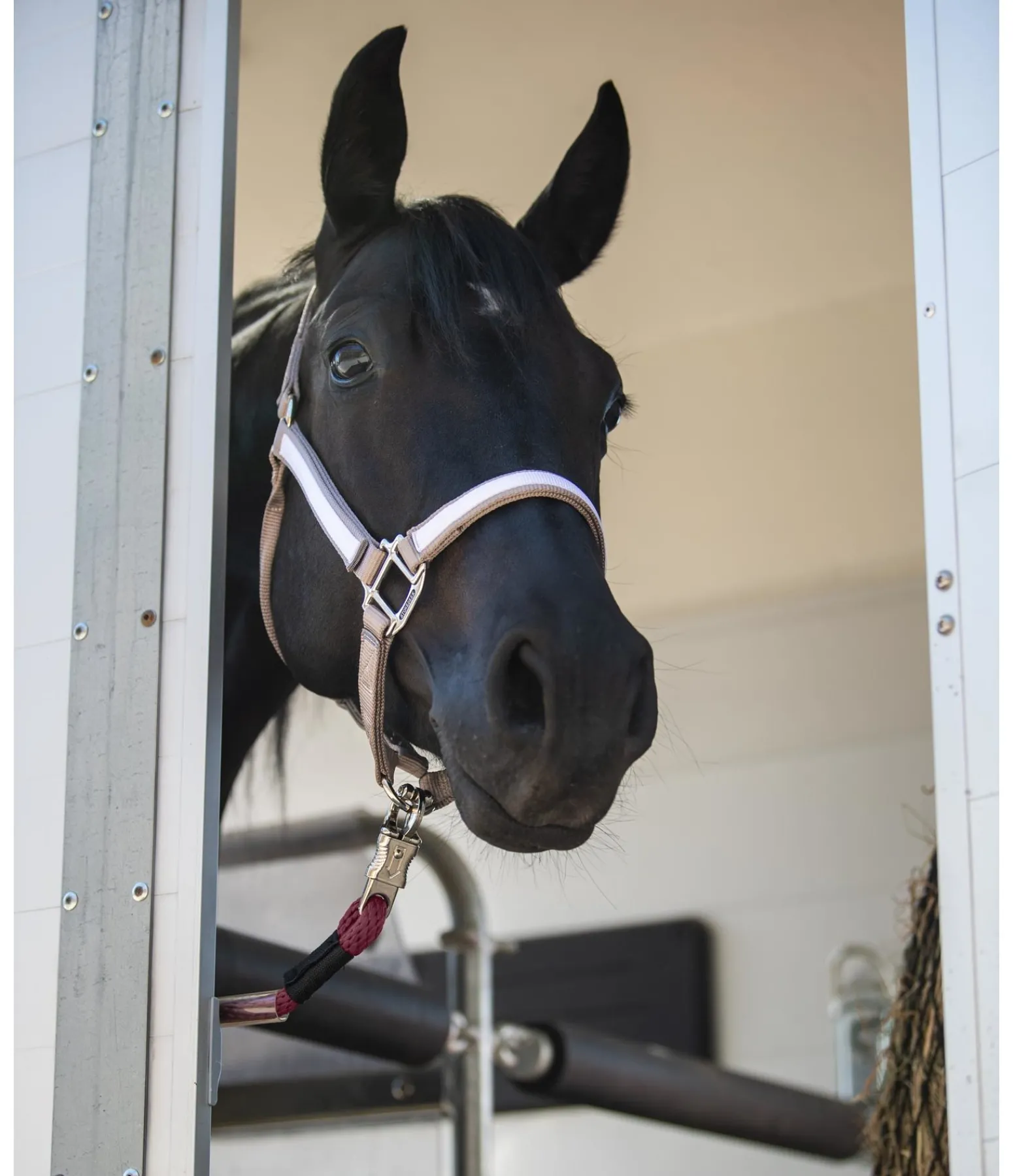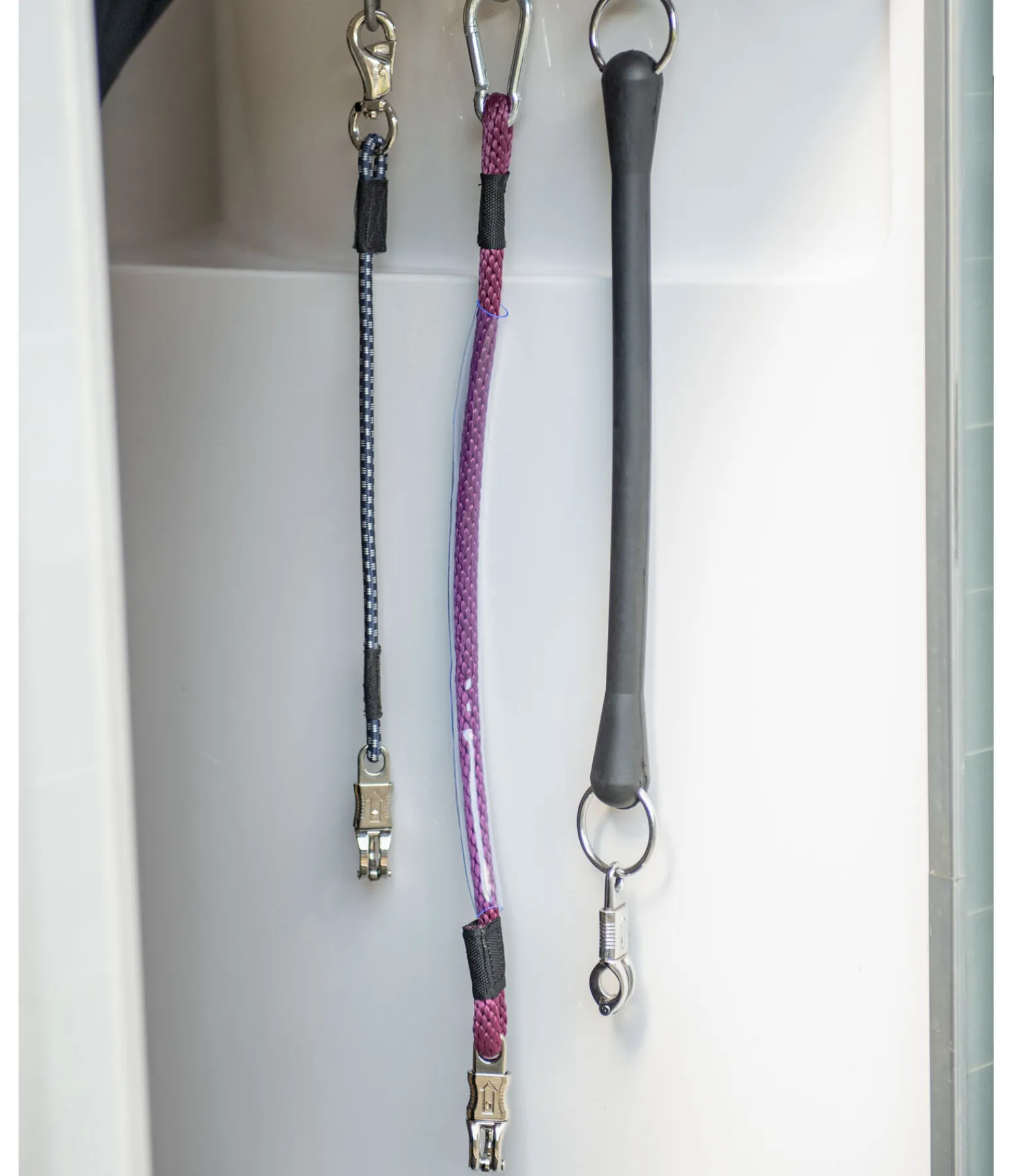 Longe robuste, idéale pour attacher les chevaux dans le van ou camion. Avec mousqueton anti-panique à une extrémité et mousqueton classique à l’autre extrémité. Longueur 75 cm.