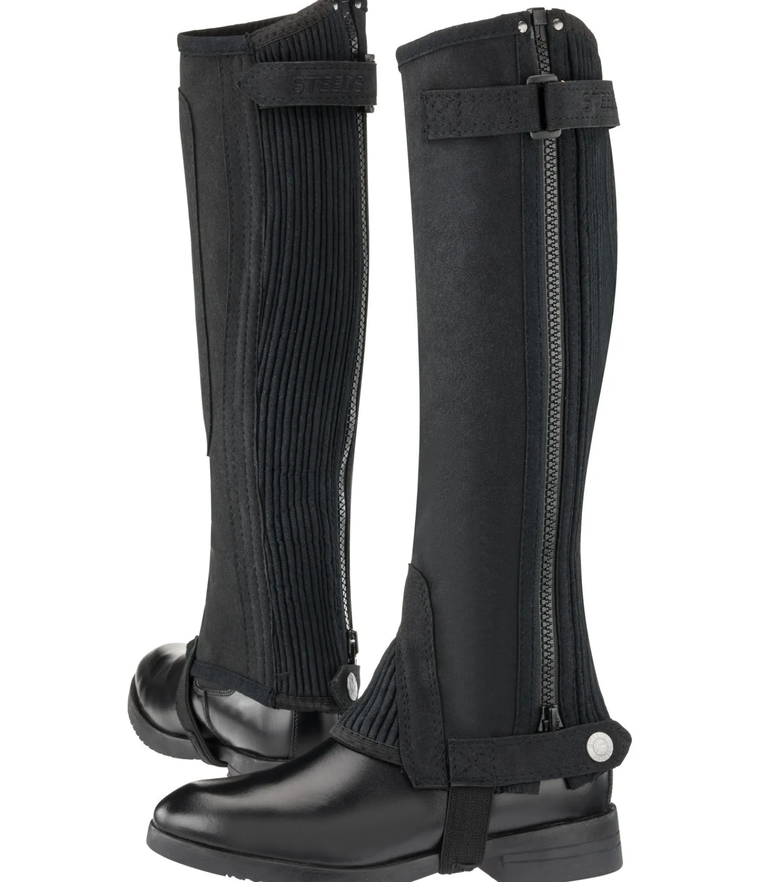 Les mini-chaps STEEDS Ecolette sont en matière synthétique Amara résistante et se distinguent par leur forme anatomique. Fermeture à glissière le long de la jambe pour un enfilage et un retrait faciles. Empiècements élastiques en matière côtelée sur le côté pour un bon maintien. Sous-pieds élastiqués. Fermeture par bouton-pression en bas de la fermeture à glissière. Réglage par patte auto-agrippante en haut de la chaps. Matière offrant une tenue optimale même mouillée. Faciles d’entretien et lavables en machine à 30°C.