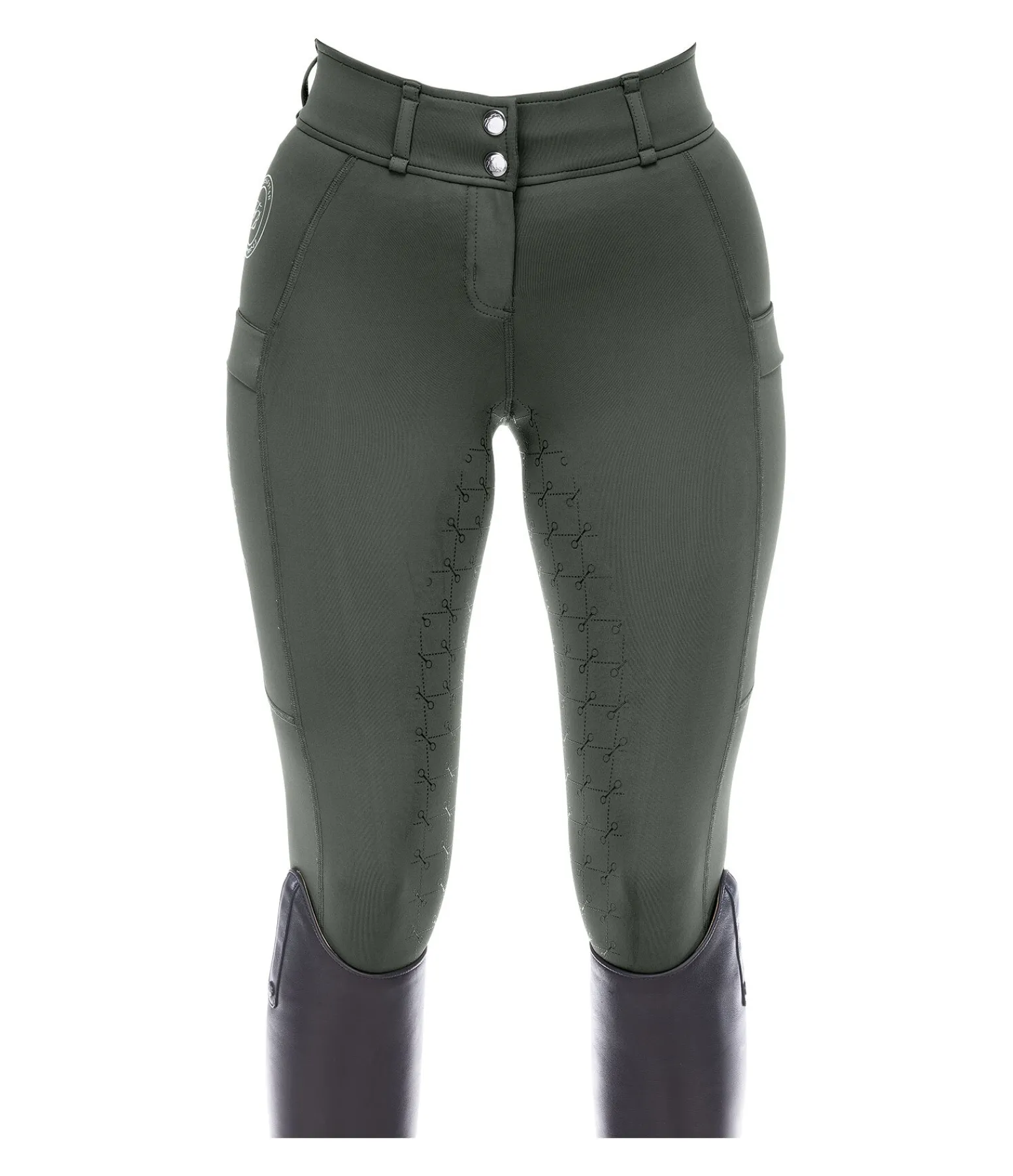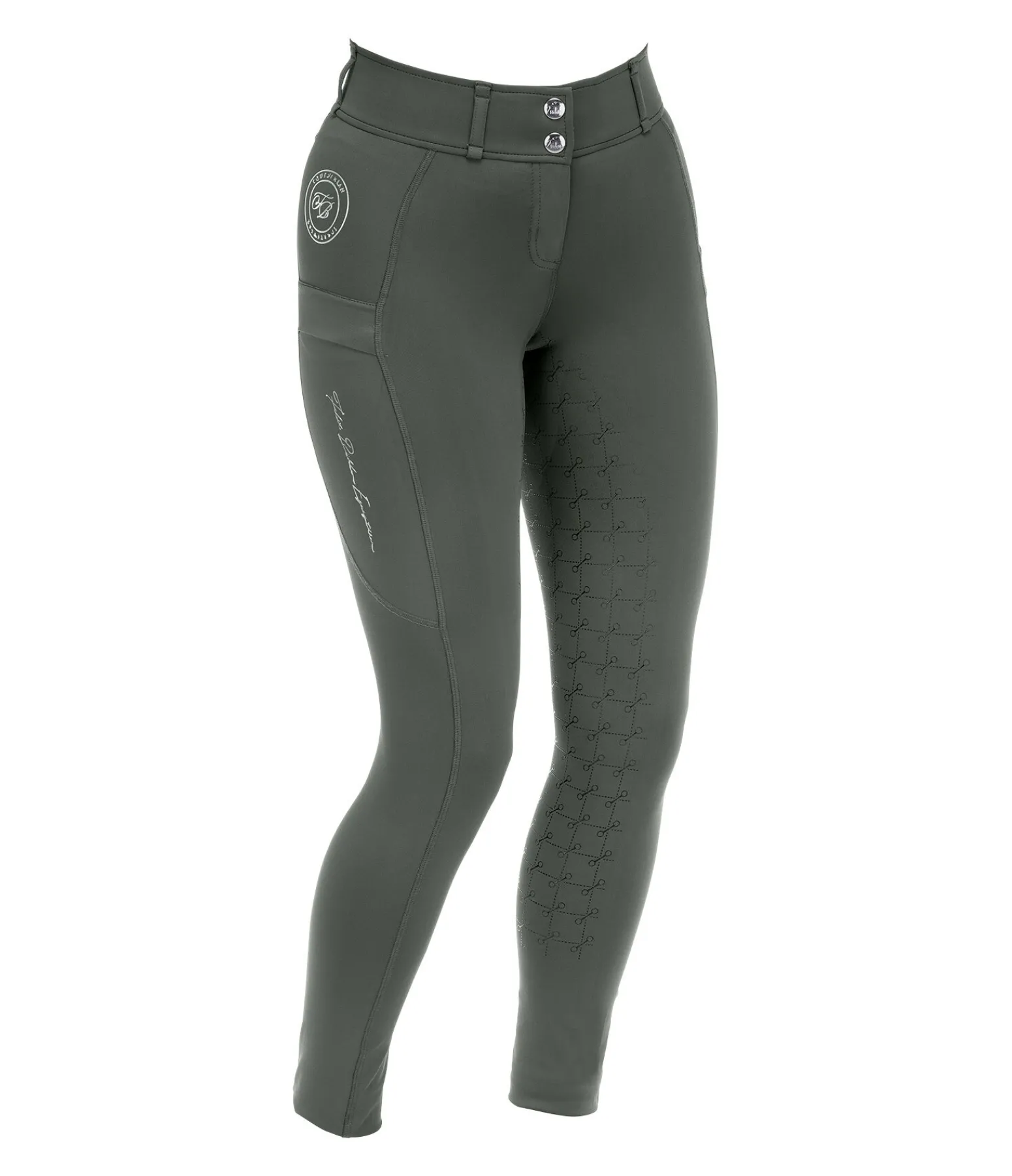 Pantalon d’équitation à fond intégral avec motif de mors en silicone. Stretch Performance extensible dans 4 directions pour un effet sculptant garanti. Matière legging respirante à séchage rapide. Ceinture extra large avec passants. Une poche zippée arrière. Une poche pour téléphone portable sur chaque jambe. Aucune couture aux genoux. Bas de jambe extensible. Badge et signature Felix Bülher scintillants. 78 % polyester, 22 % élasthanne.