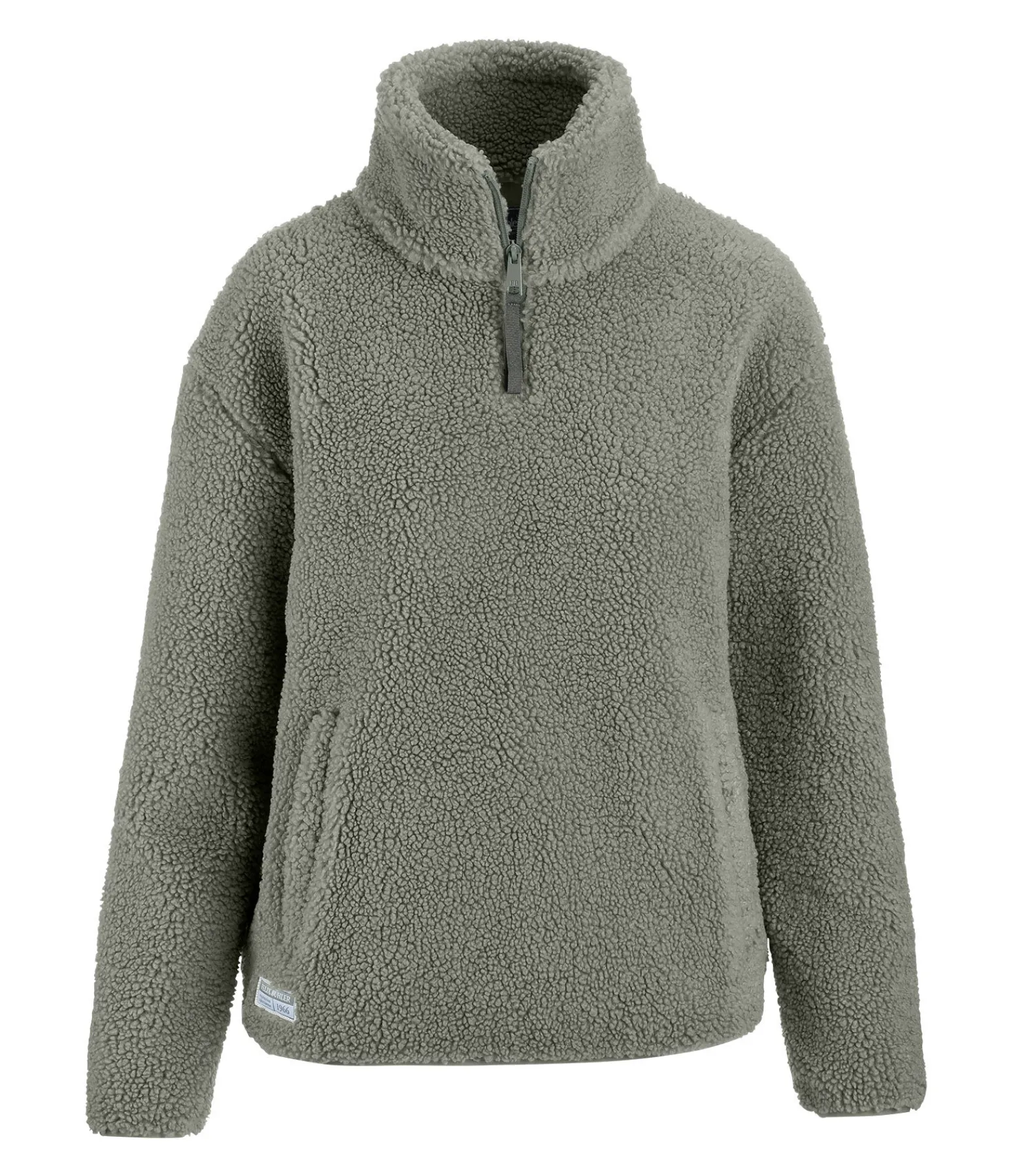Pull-over doux en sherpa. Col montant zippé. Deux poches latérales doublées en polaire douce. Bord élastiqué en bas des manches et à la taille. Badge en tissu Felix Bühler. 100 % polyester.