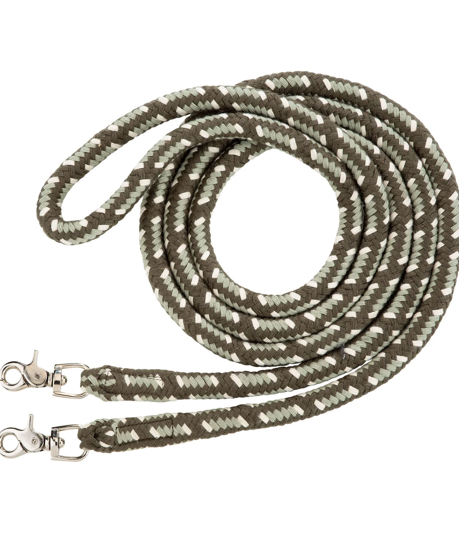 Rênes fermées douces en coton. Rondes et lourdes, elles reposent agréablement dans la main. 300 x 2 cm.