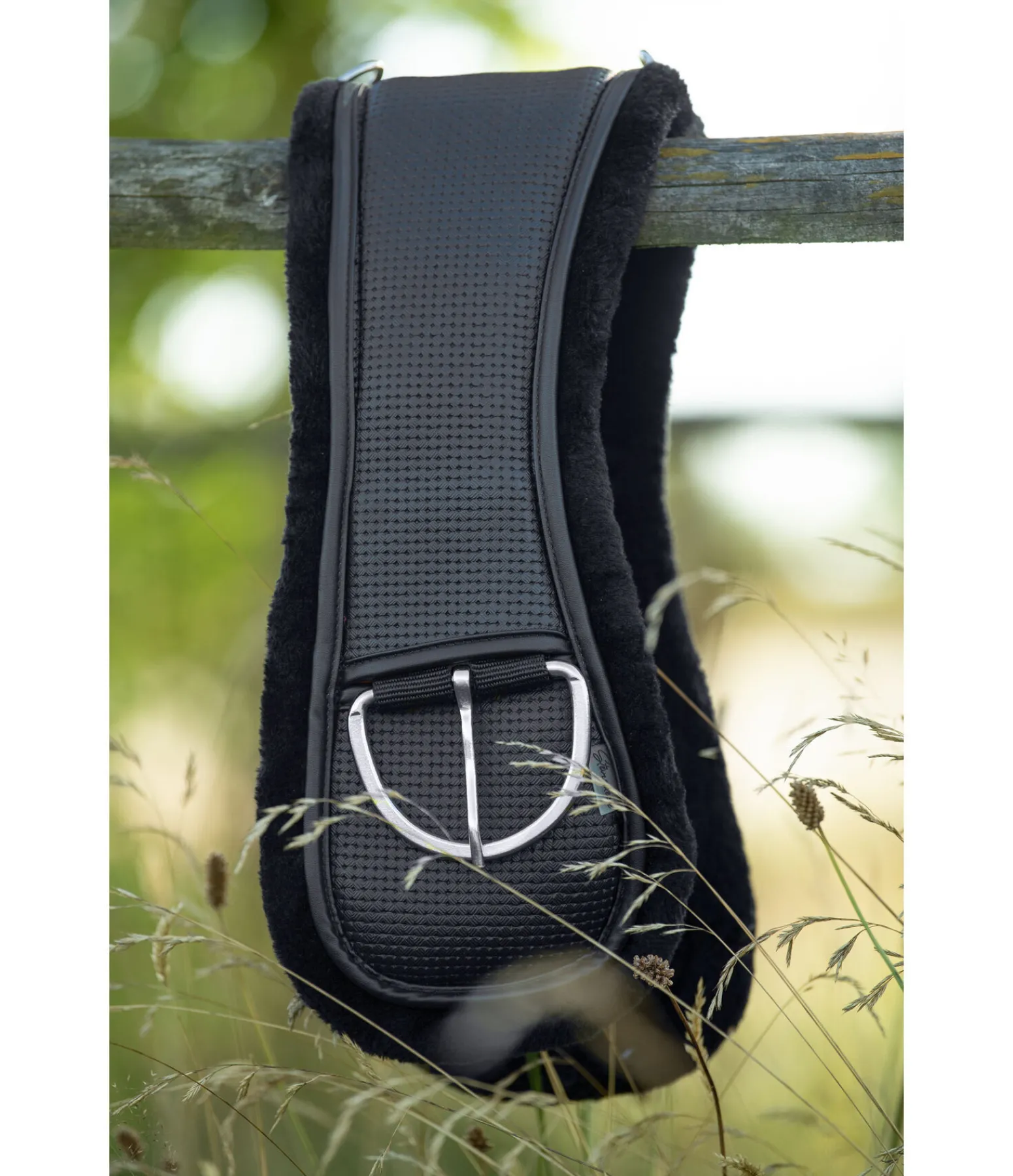 Sangle western demi-lune de grande qualité, spécialement conçue pour les chevaux ronds. Doublure douce. Boucles en acier inoxydable.